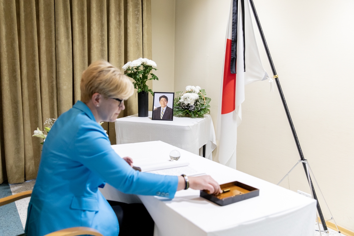 „Sužinojusi apie buvusio Ministro Pirmininko Shinzo Abe nužudymą, buvau labai sukrėsta ir giliai prislėgta.