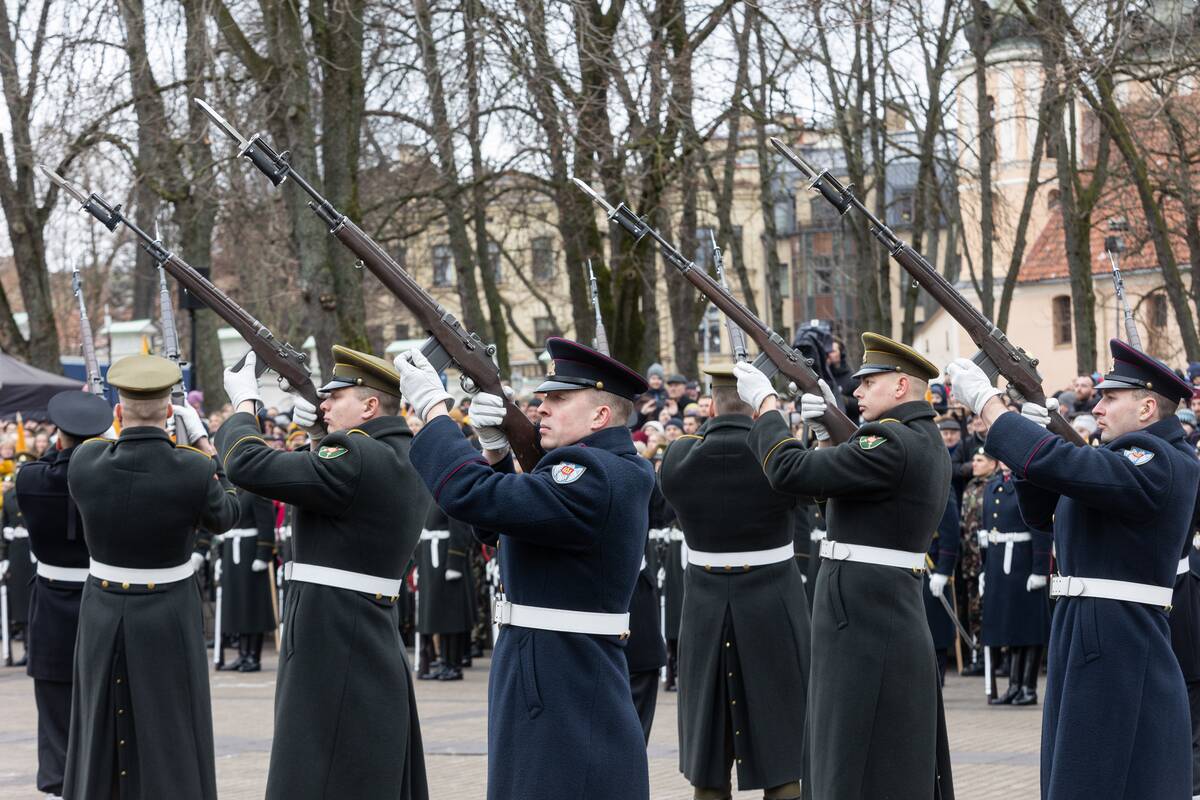 Ketvirtadienį S. Daukanto aikštėje tradiciškai skambant Lietuvos, Latvijos ir Estijos himnams pakeltos šių valstybių vėliavos, iššautos simbolinės salvės.