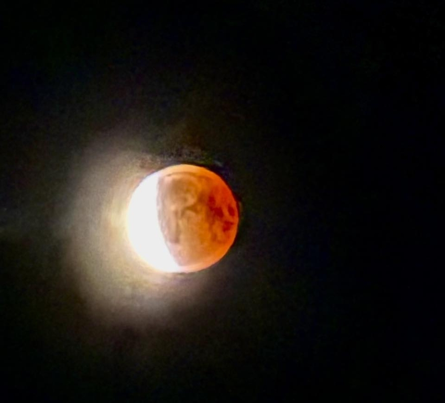 „Žinoma, ne visiško užtemimo stadija, bet dar „kruvinumo“ yra. Debesys susimylėjo ir atidengė Mėnulį, Saulei jau pradedant apšviesti jo kraštą“, – feisbuko grupėje „Orų entuziastai“ rašė Žydrūnas, pasidalijęs nuotrauka iš Ukmergės rajono.
