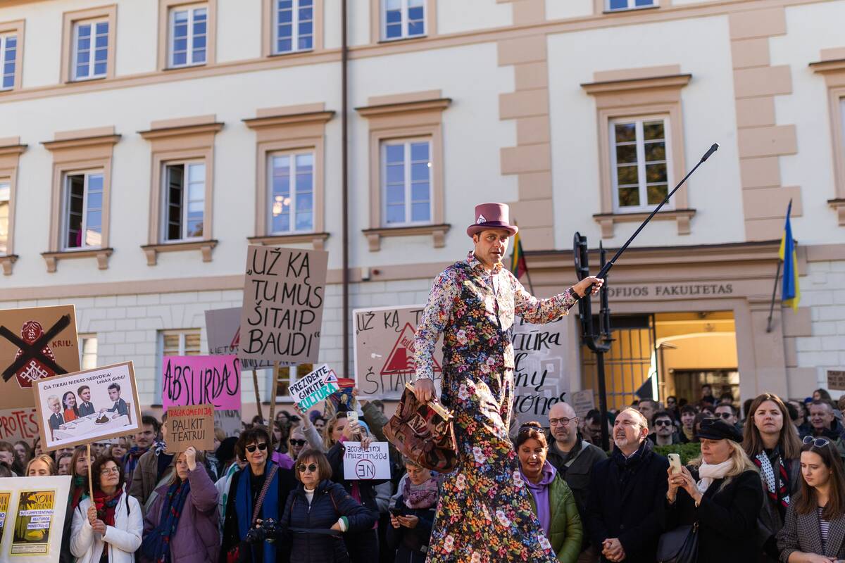 – Čia klausimas ne mums, kultūrininkams. Premjerė vis sako, kad mūsų reikalavimai reiškia koalicijos griūtį. Ne. Mūsų reikalavimas – kad „Nemuno aušros“ nebūtų kultūroje, Kultūros ministerijoje. Kaip dėliosis koalicijos dėlionė, ar bus kokia nors kita ministerija jiems pasiūlyta, klausimas ne mums. Nors, kaip pašmaikštavo kolegos, jeigu „aušriečiams“ bus atiduota kita ministerija, mes palaikysime tos srities bendruomenę jų protesto metu.