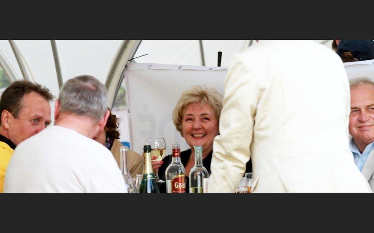 Tą patį vakarą žurnalistai K.Brazauskienę stebėjo ir vietinės nomenklatūros palapinėje, kur prie vaišių stalo sėdėjo ir dabartinis Neringos savivaldybės administracijos direktorius Algimantas Vyšniauskas.