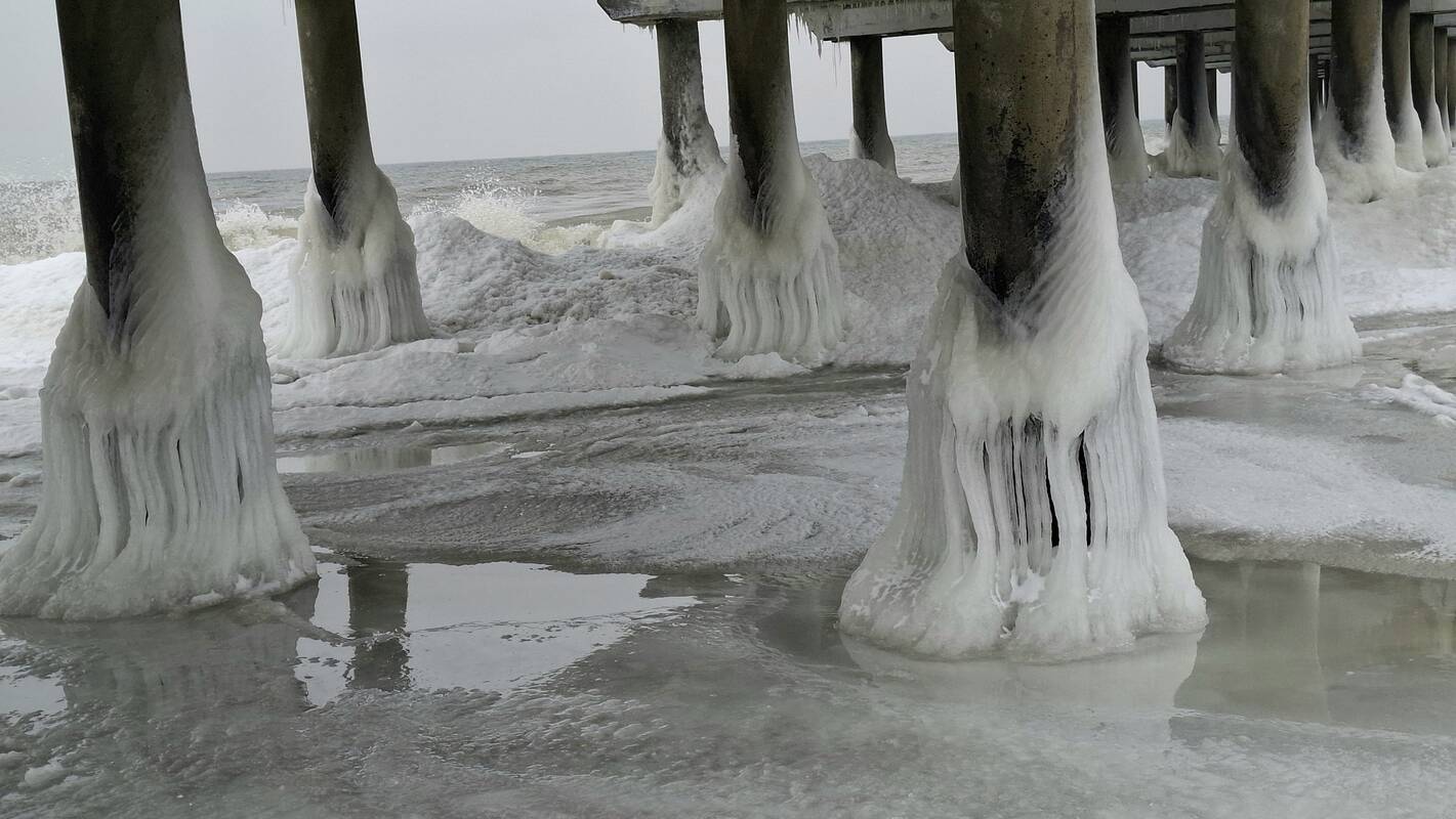 Kuršių marios užšalusios, ties Vente ir Nida ledo storis 11–13 cm, ties Juodkrante ledo danga plona. Ant ledo lipti pavojinga.