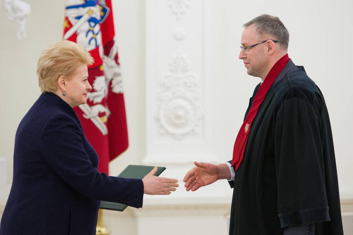 D.Grybauskaitė palinkėjo naujajam generalinio prokuroro pavaduotojui būti pavyzdžiu, kaip tinkamai ginti teisingumo interesus, ir tvirtybės bei atkaklumo dirbant šį atsakingą valstybei darbą.