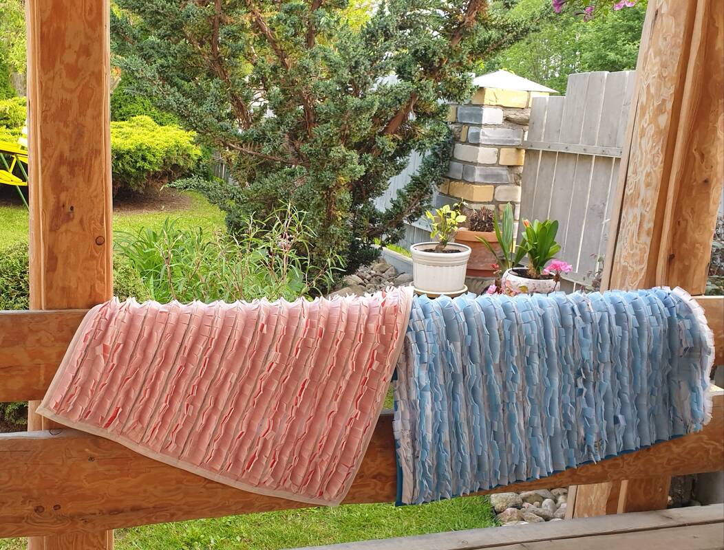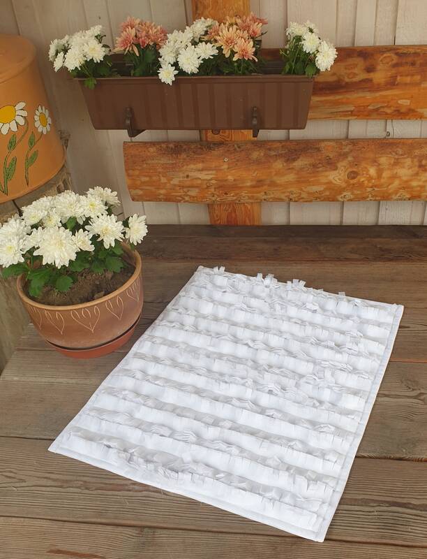 Kita pašnekovės idėja – vonios kilimėliai iš užuolaidų likučių. „Aš ir sau vonioje pasitiesiau, ir vaikams padariau, ir draugėms. Visi patenkinti, sako tik gal pagrindą storesnį reikėtų daryti. Gerai, kai kas nors duoda minčių, kaip galima kūrinį patobulinti. Kai pirmą kartą darai, kaip sakoma, pirmas blynas būna prisvilęs, o kai jau antrą – žinai, kur pataisyti, kur kokybiškiau padaryti. Taip ir sunaudoji tuos likučius, išmesti nereikia. Taip ir su kitais idėjomis dalijiesi, patari, kaip ką daryti, jei kas grupėje klausia. Ir aš pasižiūriu, ką kiti padaro: kas nors kokį drabužį pasisiuvo seną treningiuką gabaliukais sukarpęs – pagalvoju, kad ir aš gabaliukų turiu, galiu ką nors panašaus padaryti, nes rezultatas man patinka. Randi priimtinų variantų, kur gali likučius sunaudoti, nes išmesti – paprasčiausia, bet ne geriausia išeitis. Kai prisimenu, kiek aš visko esu išmetusi, pasidaro labai liūdna. Dabar nieko nemesčiau, viską gražiai susidėčiau ir tikrai rasčiau, kaip panaudoti.“