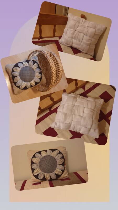 Rankdarbiams moteris teigia dažniausiai naudojanti siūlų, audinių likučius ar medžiagas, kurios jau kartą buvo panaudotos, kad nereikėtų nieko pirkti. Minčių, ką iš tų likučių galima padaryti, jai tikrai netrūksta.