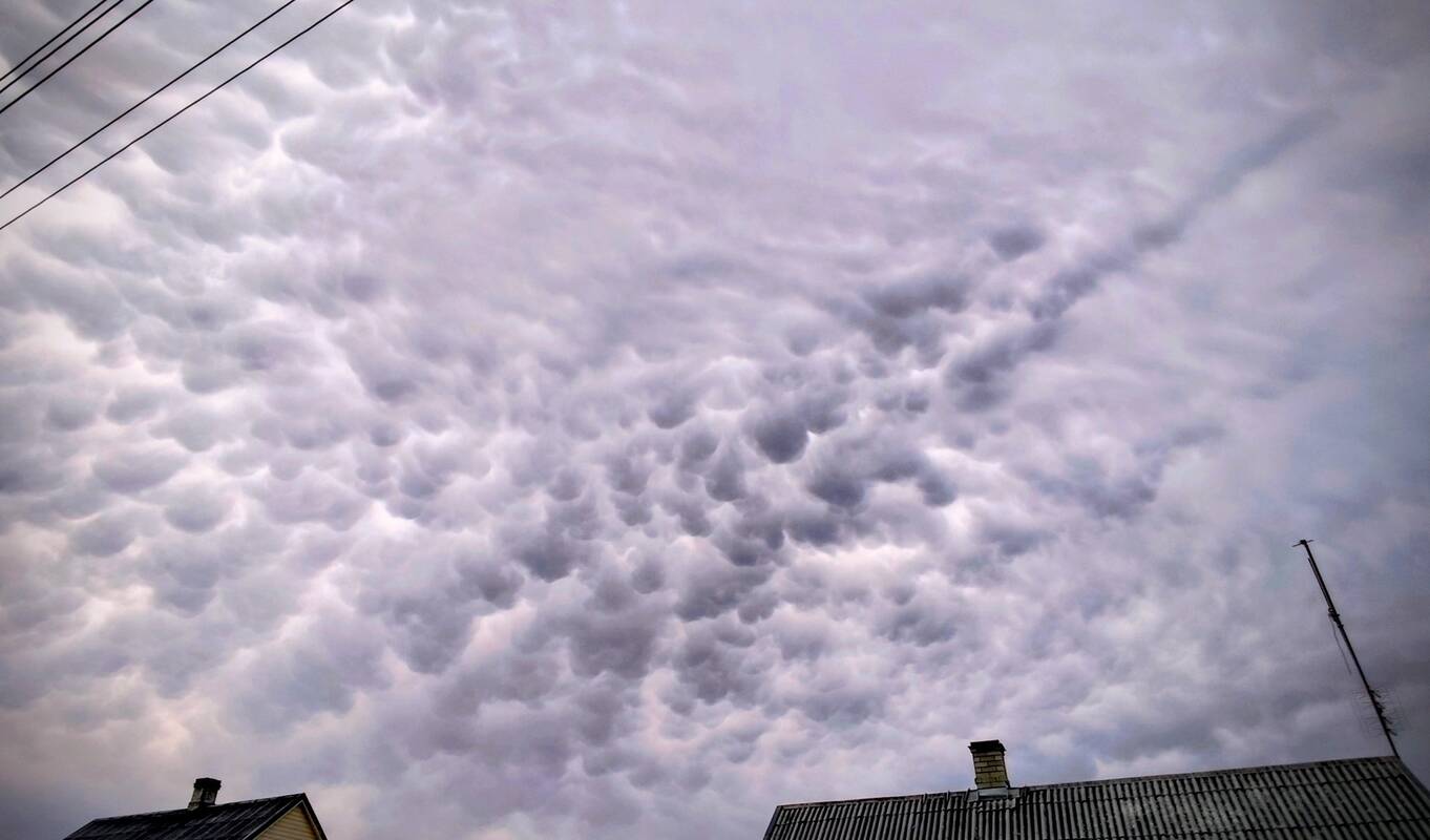 „Esant didelei debesies elementų – ledo kristalų ir/ar vandens lašelių – koncentracijai, oras debesyje tampa sunkesnis už aplinkos orą ir jis pradeda leistis. Besileidžiančio oro temperatūra išauga, tačiau didelis kiekis šilumos yra panaudojamas debesų elementų tirpinimui ir garinimui. Jei šiam procesui reikalingas šilumos kiekis yra didesnis už gaunamą drėgnaadiabatinio leidimosi metu, besileidžiantis oras išlieka vėsesnis ir toliau juda žemyn kartu su debesų elementais. Todėl, apatinėje debesies dalyje išryškėja nedideli apvalios formos išsikišimai“, – penktadienį feisbuke akcentavo sinoptikai.