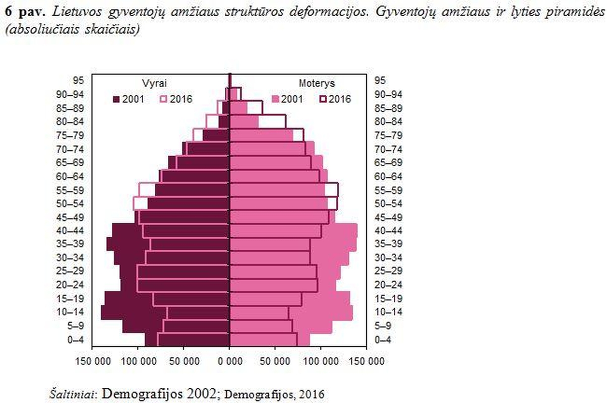 Dabartinė deformuota gyventojų amžiaus struktūra bus vienas svarbiausių Lietuvos demografinio nykimo veiksnių iki šio šimtmečio vidurio ir net žvelgiant į tolimesnę perspektyvą.