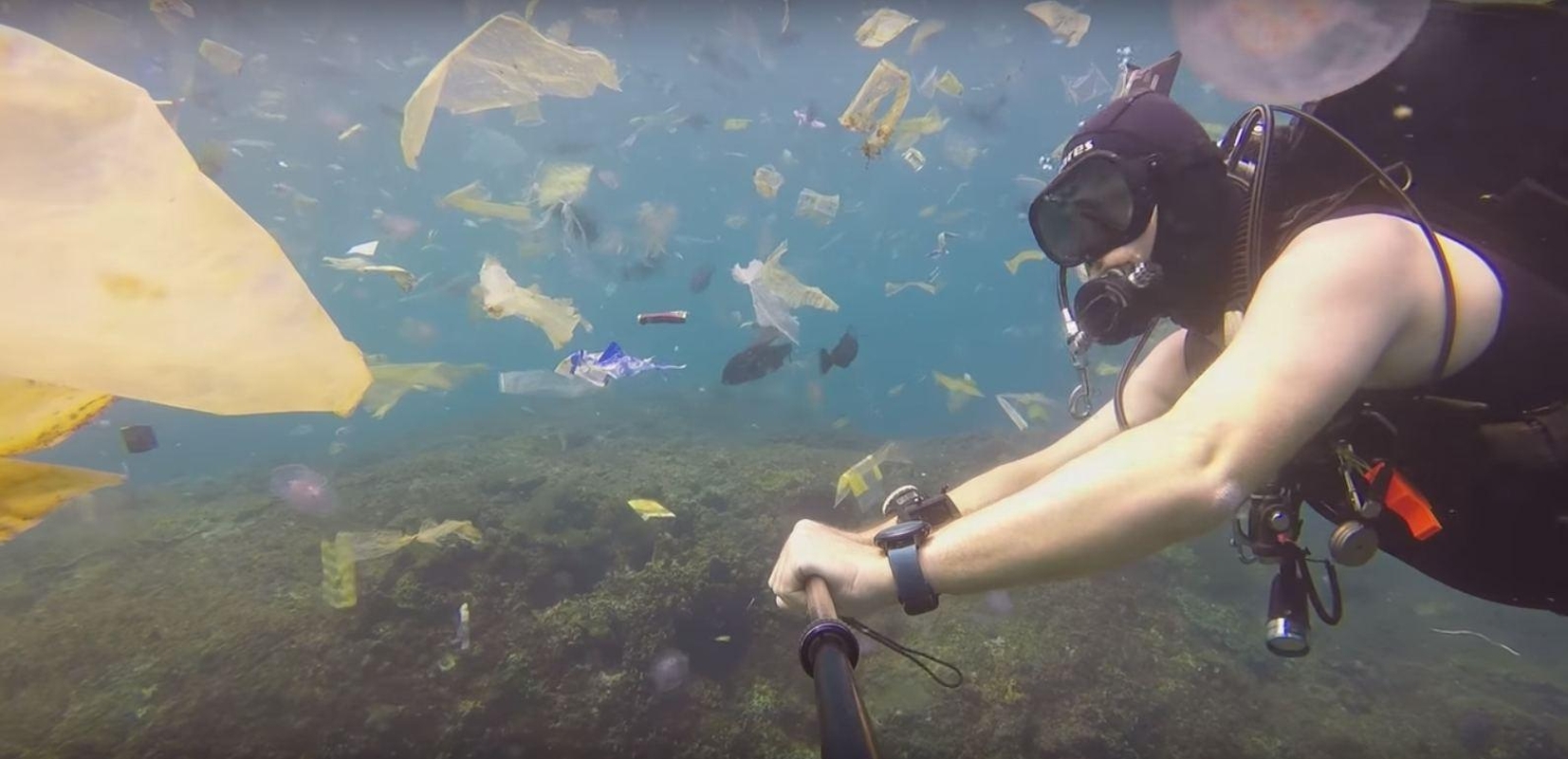 Vaizdo įraše matyti, kaip R.Horneris plaukioja tarp šiukšlių, kurių – kur kas daugiau nei žuvų ar kitų gyvių. Atliekos vandenyno paviršiuje netgi primena šiukšlių lubas.