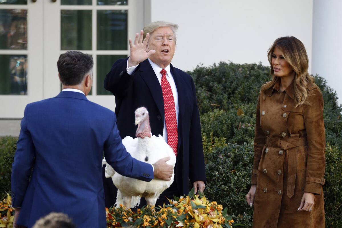 „Atrodo, kad demokratai kaltina mane per dideliu nuolaidumu kalakutams“, – pasakė D. Trumpas renginio, kuriame dalyvavo ir jo žmona Melania Trump (Melanija Tramp), svečiams, susodintiems Baltųjų rūmų Rožyne. Tačiau kreipdamasis į kalakutus jis pridūrė: „Ne taip kaip ankstesni liudytojai, jūs ir aš esam iš tikrųjų susitikę. Tai labai neįprasta.“