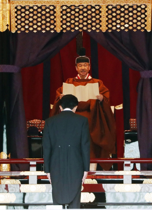 Naruhitui baigus kalbėti, Japonijos ministras pirmininkas Shinzas Abė tris kartus sušuko „Banzai!“ (tegyvuoja imperatorius).