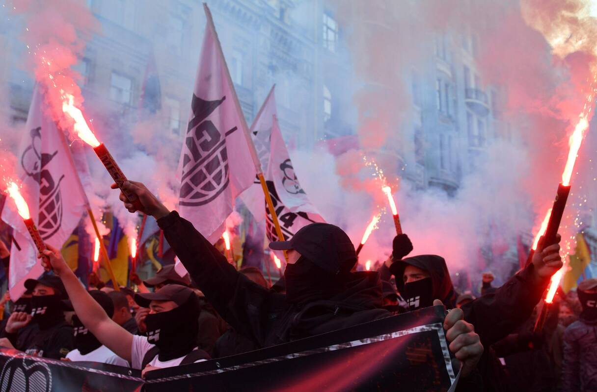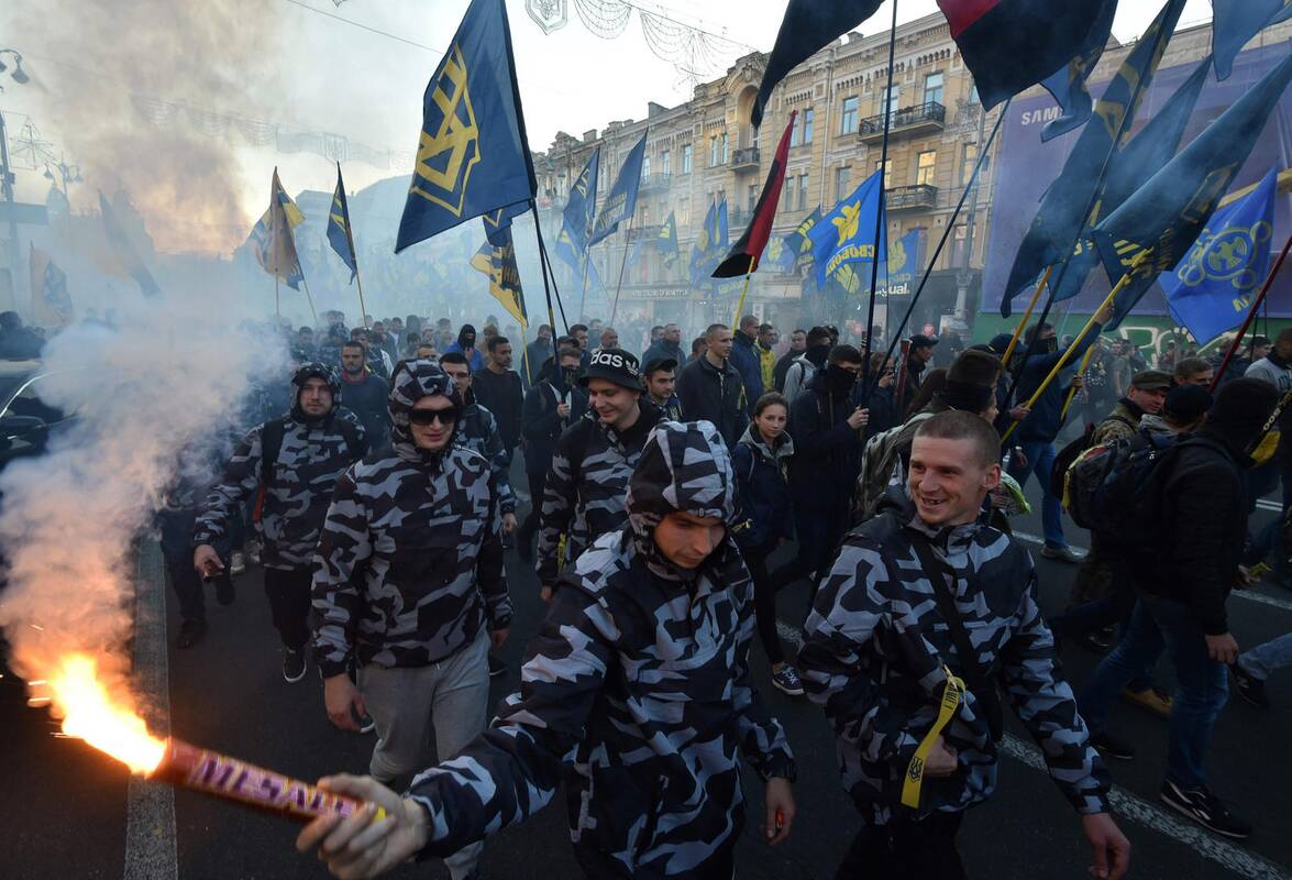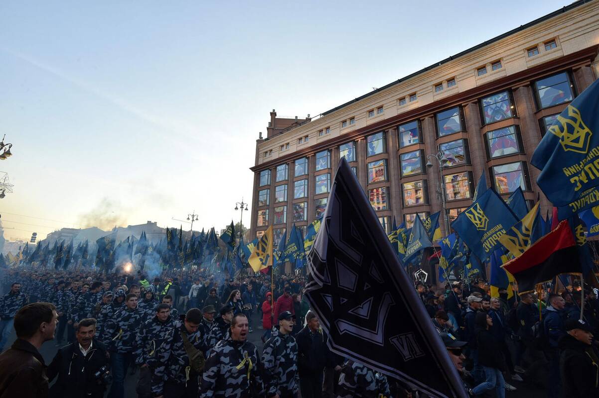 Šios eitynės surengtos paminėti 76-ąsias Ukrainos sukilėlių armijos įkūrimui.