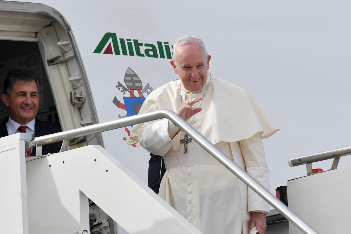 Pranciškų skraidinantis lėktuvas nusileido Abu Dabyje. Jis šalyje praleis 48 valandas, per kurias susitiks su musulmonų dvasininkais ir surengs mišias maždaug 135 tūkstančiams katalikų.