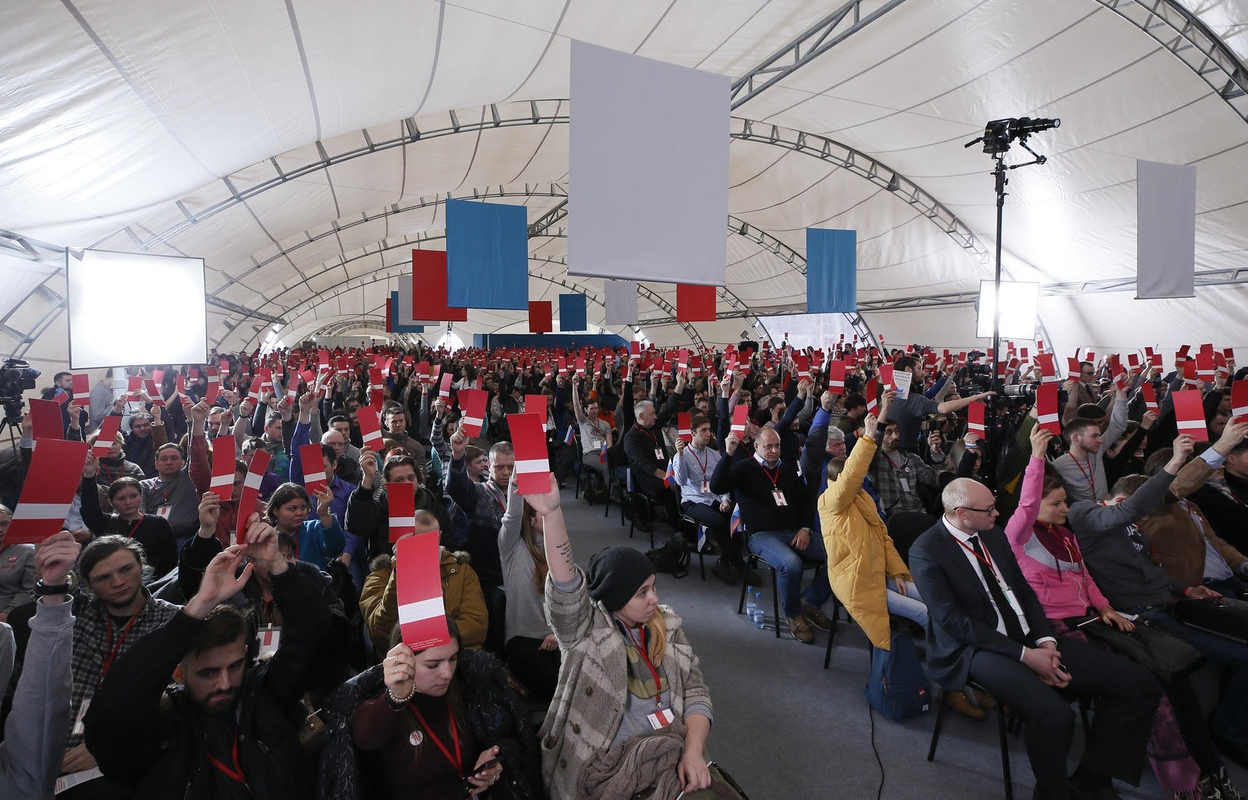 Maskvoje rasti patalpas iniciatyvinės grupės dėl A. Navalno iškėlimo kandidatu į prezidentus sekmadienio susirinkimui buvo taip sunku, kad kampanija pasistatė didžiulę palapinę parke apsnigtame Maskvos upės krante.