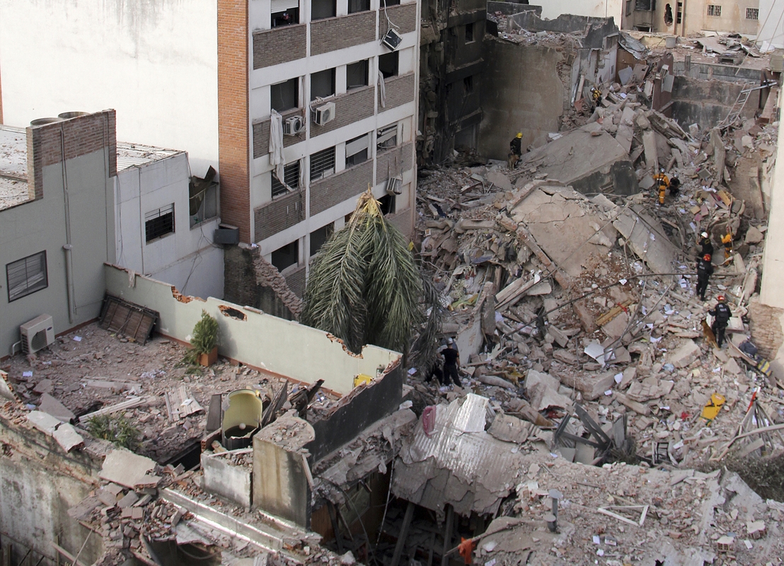 Rosarijaus miesto pareigūnai sakė, kad dar bent 15 žmonių iki šiol nerasti, o šimtai ugniagesių ir gelbėtojų naršė pastatą, kuriam gresia pavojus sugriūti.