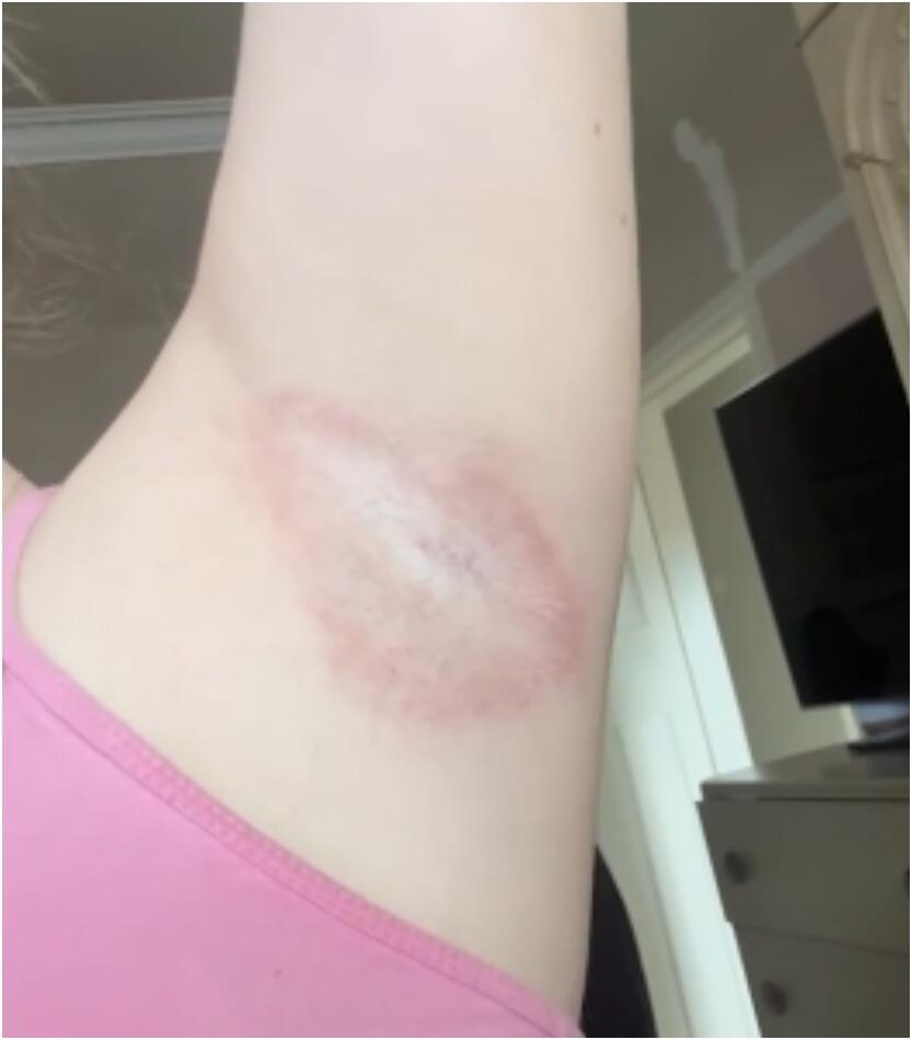 Nuotraukos, kuriose matyti žalia, paraudusi pažastų oda, buvo dalijamos „TikTok“, „Instagram“ ir interneto forumuose, o vartotojai ašarojo dėl skausmingų, besiplečiančių žaizdų.