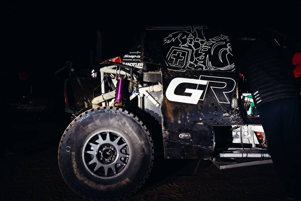 „Turiu liūdnų naujienų mums. Tikėtina ir Jums. Ką tik FIA techniniai ekspertai apžiūrėjo Hilux'ą, išsikėlė informaciją iš Black Hawk'o "juodosios dėžės" ADR (Accident Data Recorder) įrenginio. Trumpa reziume: galinis ratas sugerdamas smūgį pažeidė lanką bei bako konstrukciją. Su šiais pažeidimais mes negalėsime tęsti šio Dakaro. Atleiskite”, – dėstė Dakaro legenda B.Vanagas.