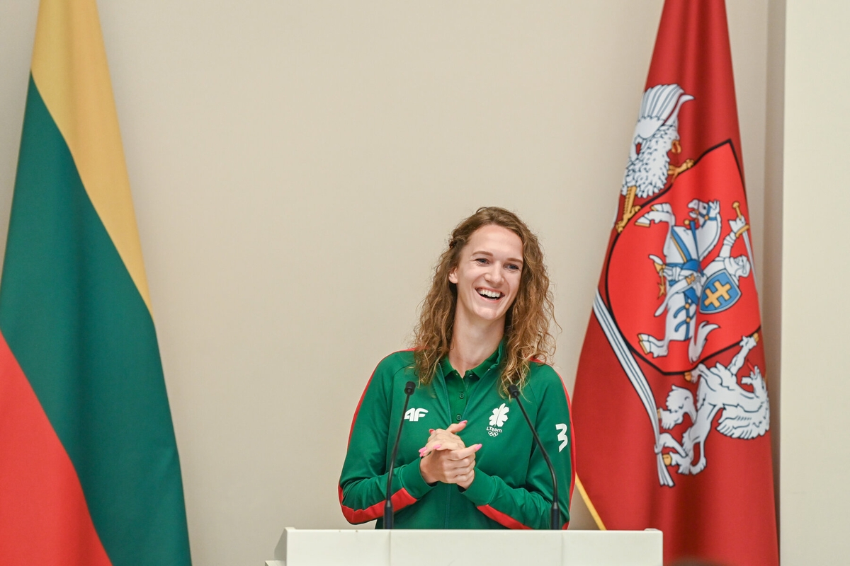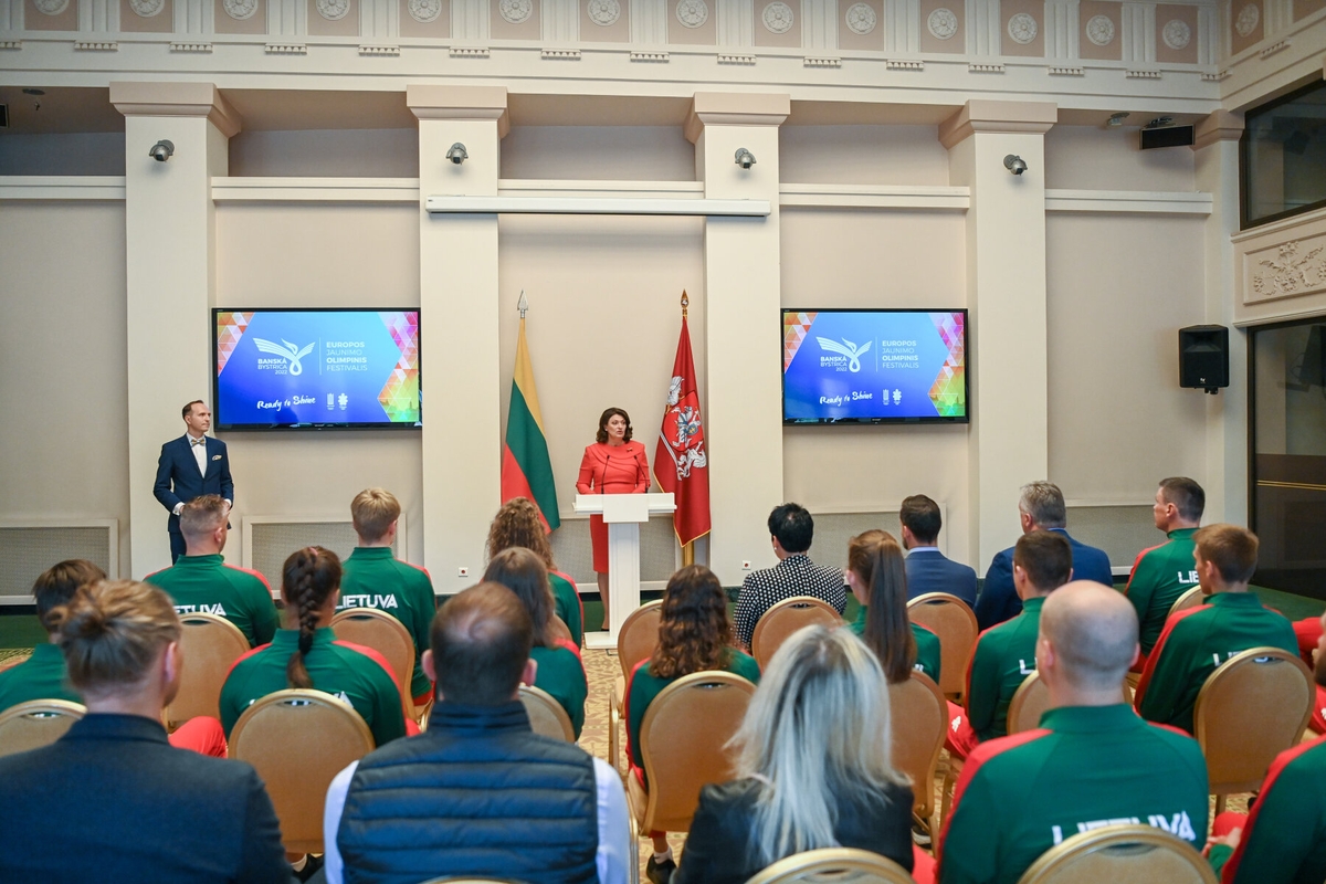 D. Nausėdienė palydėtuvėse sportininkams linkėjo ne tik garbingai atstovauti Lietuvai Slovakijos Banska Bistricos mieste vyksiančiame festivalyje, bet ir siekti kvapą gniaužiančių aukštumų, ateityje – garbingo Lietuvos olimpiečio vardo.