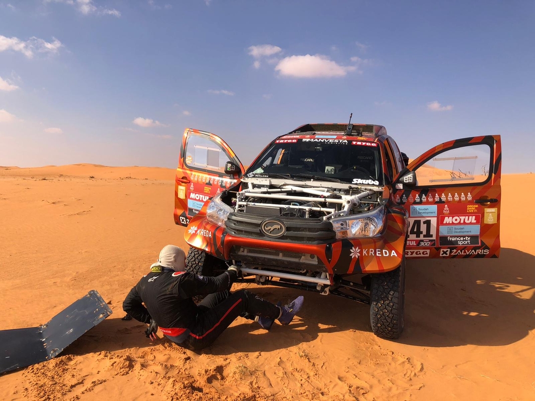 „Važiuojant dinginėjo elektra, tiksliau vis prasčiau ir prasčiau krovė generatorius. O galiausiai, visiškai nustojo tą daryti. Stojom, kai buvo likę vos 8 voltai. Nusiėmėm apsaugą ir generatorių, o tada radom problemą. Buvo nutrūkęs generatoriaus laidelis, bet jį sutvarkėm patys. Įveikėm šitą problemą, įveiksim ir kitas. Svarbiausia, kad Dakaras tęsiasi“, – sakė „Kreda“ komandos lyderis A. Juknevičius.
