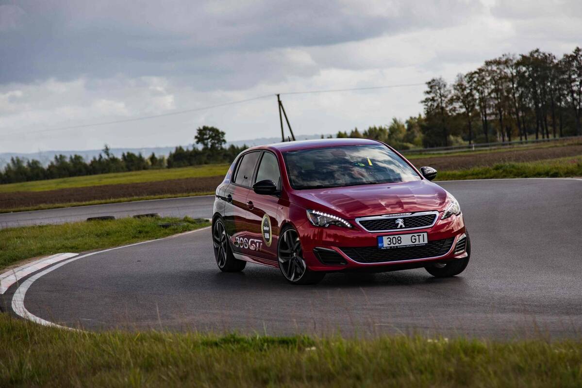 „Peugeot 308 GTI“. Mane labiausiai nustebinęs automobilis. Turėjau galimybę šį „Peugeot“ pasiimti iš „Auto Vici“ salono ir nuvykti iki kartodromo. Dėl to turėjau galimybę išbandyti jį ne tik kartodromo trasoje, bet ir labiau įprastoje aplinkoje. Vizualiai niekuo ryškiai neišsiskiriantis iš kitų kasdienių transporto priemonių (kas, mano nuomone, yra jo pranašumas, nes neprovokuoja kelių erelių pradėti miesto lenktynes) savo vidinėmis savybėmis mane maloniai nustebino. Sėdynės – sportiškos ir patogios, prietaisų skydas, apšvietimas ir „Sport“ režimas sukuria sportiško automobilio įspūdį. Jis puikiai pritaikytas kasdien važinėti tiek didmiesčiuose, tiek tarpmiestiniuose keliuose ar lenktynių trasose.
