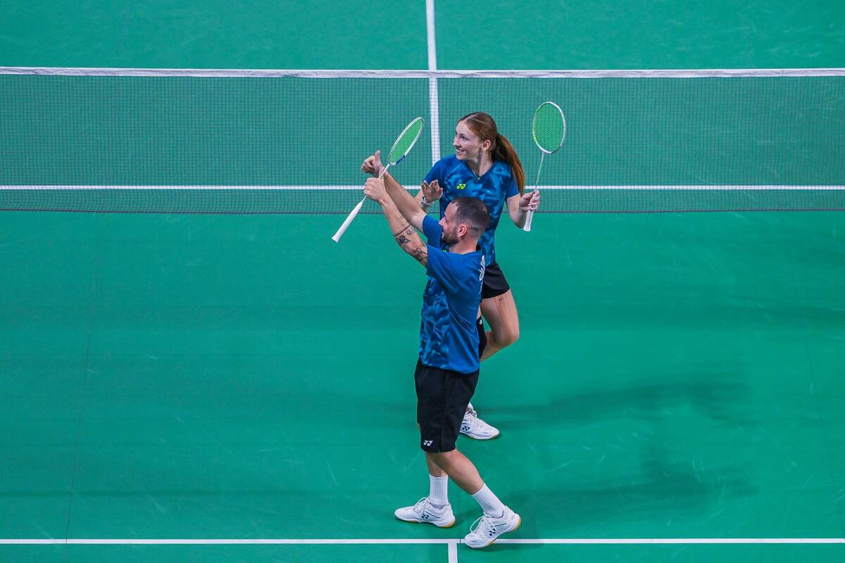 Į mišrių dvejetų atkrintamąsias varžybas pateko abu lietuvių tandemai. Prie anksčiau vietą išsikovojusių Tado Rimkaus ir Aurelijos Ramaneckaitės, antradienį prisišliejo ir Kazimieras Dauskurtas su Vaiva Žymante. Pastaroji pora antrosiose E grupės rungtynėse po gana atkaklaus mačo 2:1 (17:21, 21:10, 21:17) palaužė indų badmintonininkus – Piyushą, Shreyą Singlą.