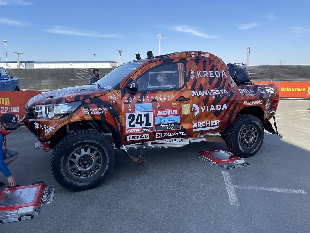 „Administracinius formalumus sutvarkėm sklandžiai, o lenktyninio automobilio techninė patikra irgi buvo įveikta sėkmingai. Pagelbėjo tai, kad teisėjams mūsų automobilio modelis puikiai pažįstamas, todėl patikros procesas buvo greitas. Dabar liko tik pastatyti „lapę“ į uždarą bivaką, kuriame ji ilsėsis iki Dakaro starto“, – pasakojo „Kreda“ komandos lyderis A. Juknevičius.
