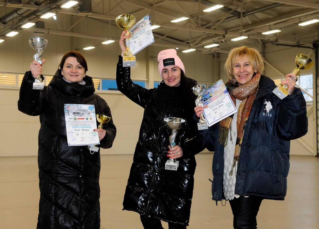 Džentelmenai senjorai, kad varžybos neprailgtų, vienoms pirmųjų išbandyti trasą suteikė galimybę moterų įskaitos dalyvėms. Šįkart abiejose trasose dailiosios lyties atstovėms spartą demonstravo Viktorija Jakaitė, sugaišusi atitinkamai 43,77 ir 40,09 sek. Nugalėtoja pranoko antroje vietoje likusią Laimą Suchik bei trečiąją prizininkę Simoną Polonskytę. Ketvirtąja vieta buvo priversta tenkintis nuolatinė šių lenktynių dalyvė Meilė Pumerytė.