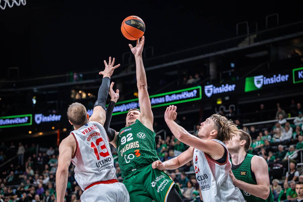 Lietuvos krepšinio lygoje (LKL), kurią remia „Betsson“, žalgiriečiai laimėjo ketvirtą mačą iš eilės – savo arenoje 98:68 sutriuškino Utenos „Juventus“ ekipą.