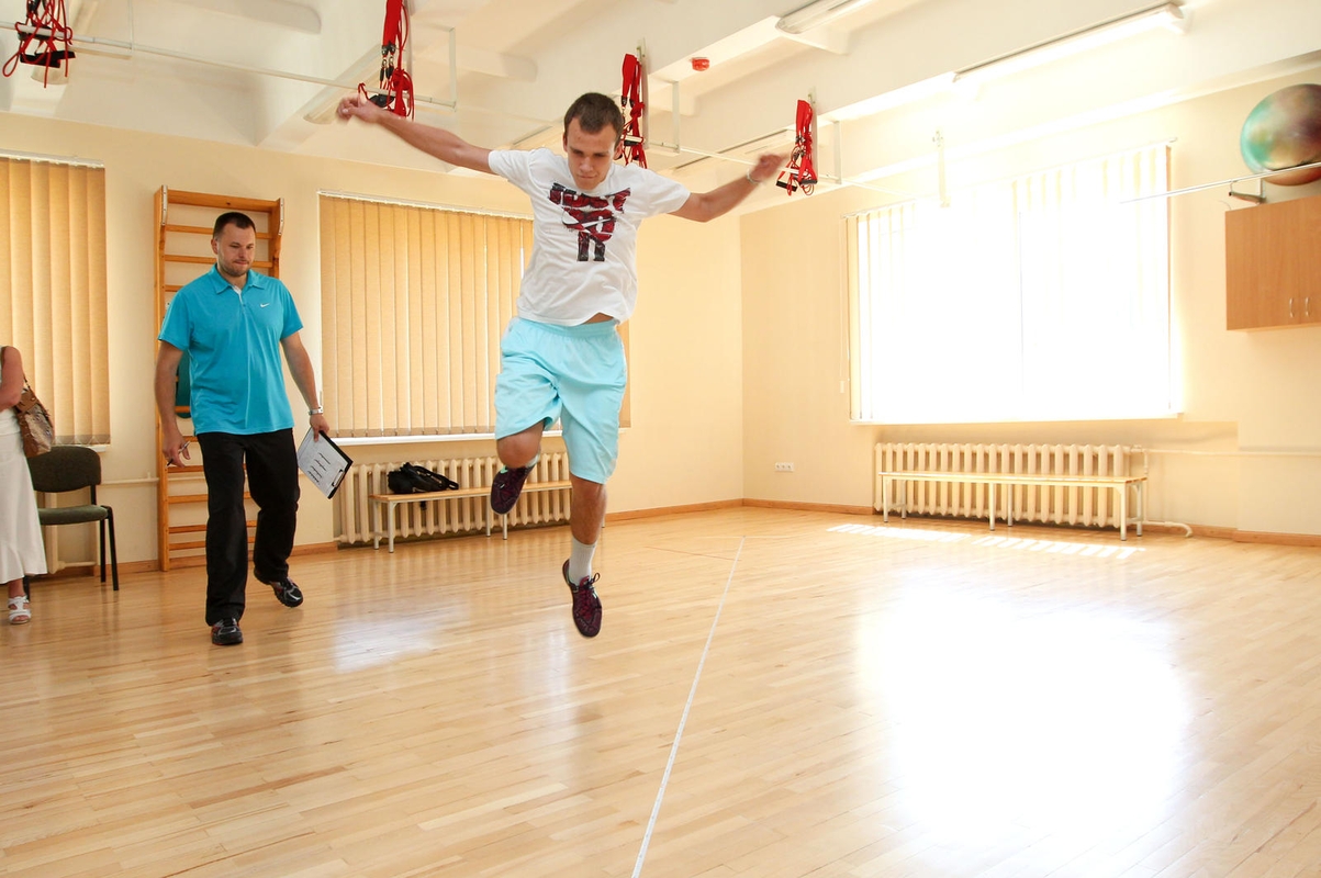 "Jei nušokus kulnas nesiekia grindų, vadinasi, sutrumpėję blauzdos raumenys, todėl skiriame daugiau tempimo pratimų. Jei keliai krypsta į vidų, reikia žiūrėti, kur yra silpna grandis, kurį varžtą paveržti, kurį atleisti", – vaizdingai kalbėjo L.Šiupšinskas.