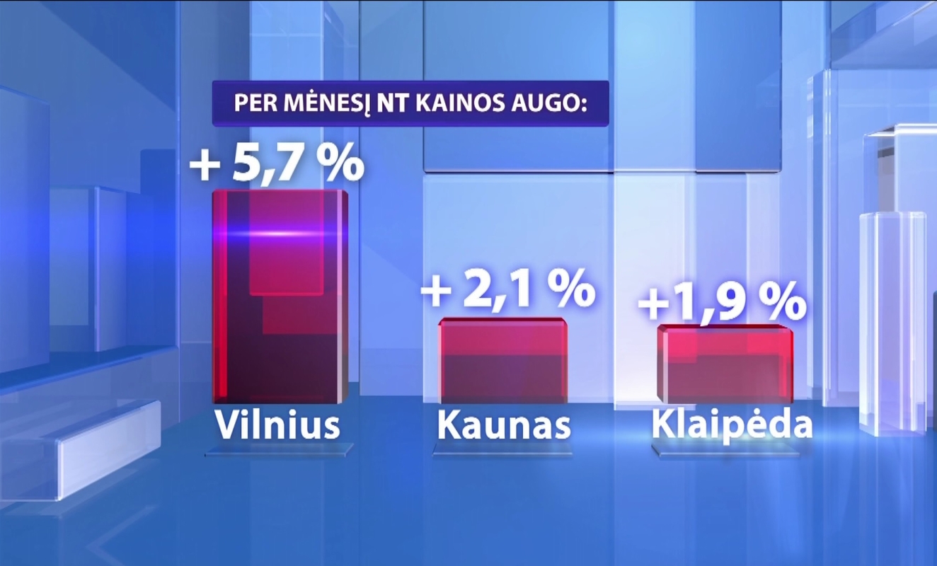 Vilniuje per mėnesį kainos augo beveik 6 proc., Kaune – šiek tiek daugiau nei 2 proc., Klaipėdoje – beveik 2 proc.