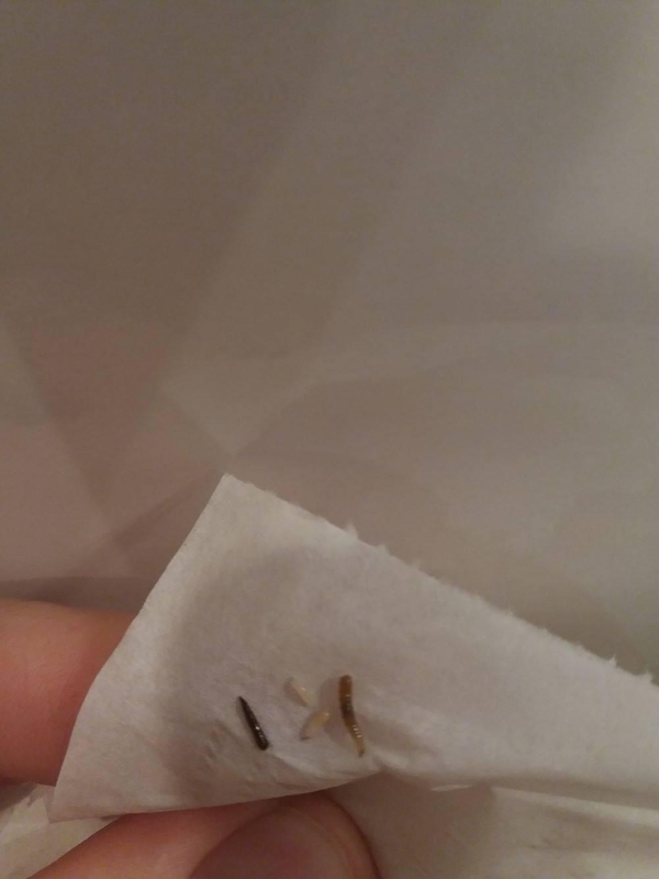 "Laimė, dvi tamsiai rudos kirmėlės užkliuvo už akių. Kitaip būtume kramsnoję mandarinus su "mėsyte". Baltosios – vos įžiūrimos. Galima tik įsivaizduoti, kiek žmonių prisivalgė tų šlykštynių. Gyvas radinys rangėsi pirmame paimtame vaisiuje, tad knistis kituose jau nebuvo ūpo. Visus nedelsiant išmetėme, o tą vienintelį – nufotografavome", – baisėjosi pašnekovas.