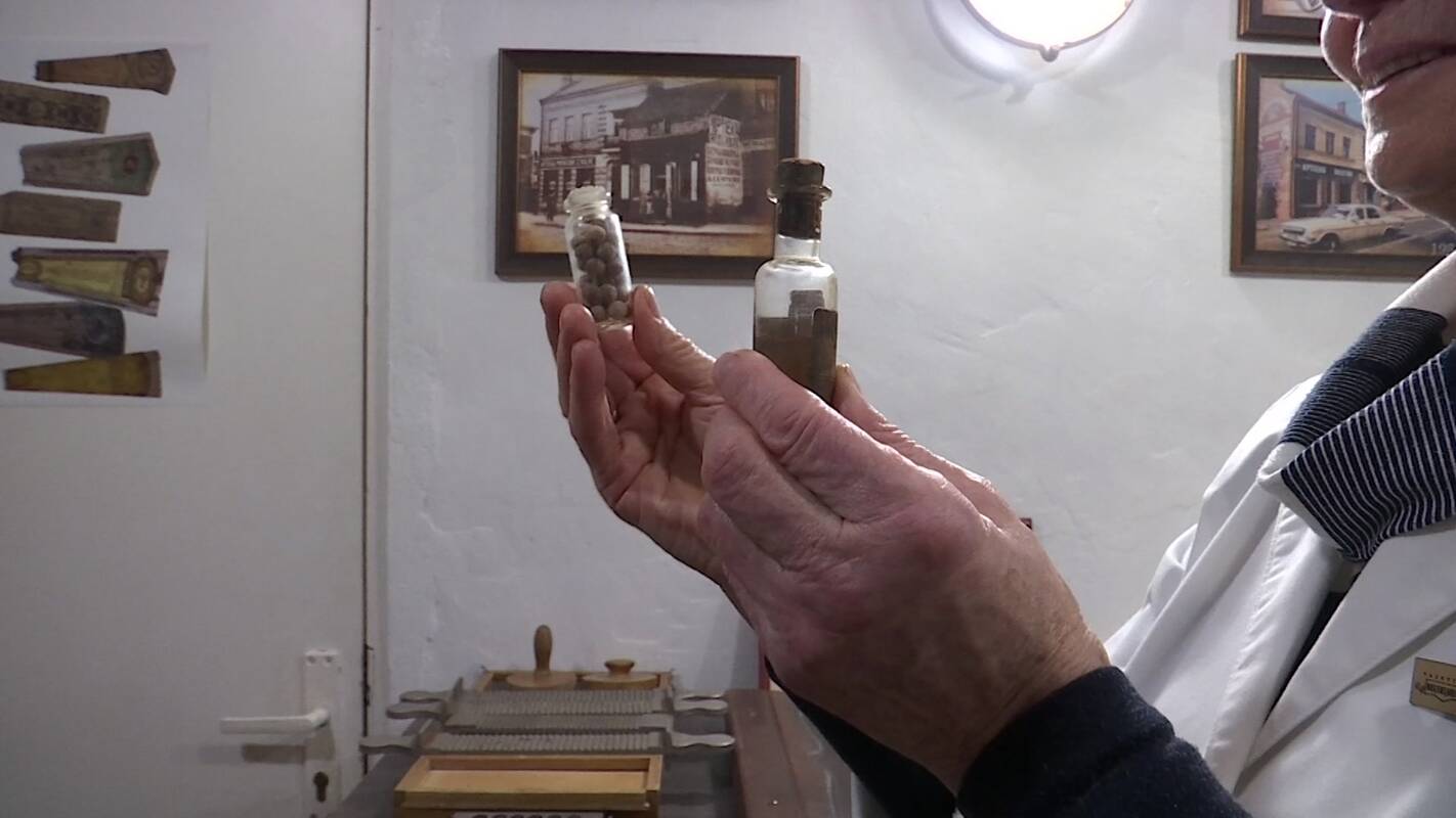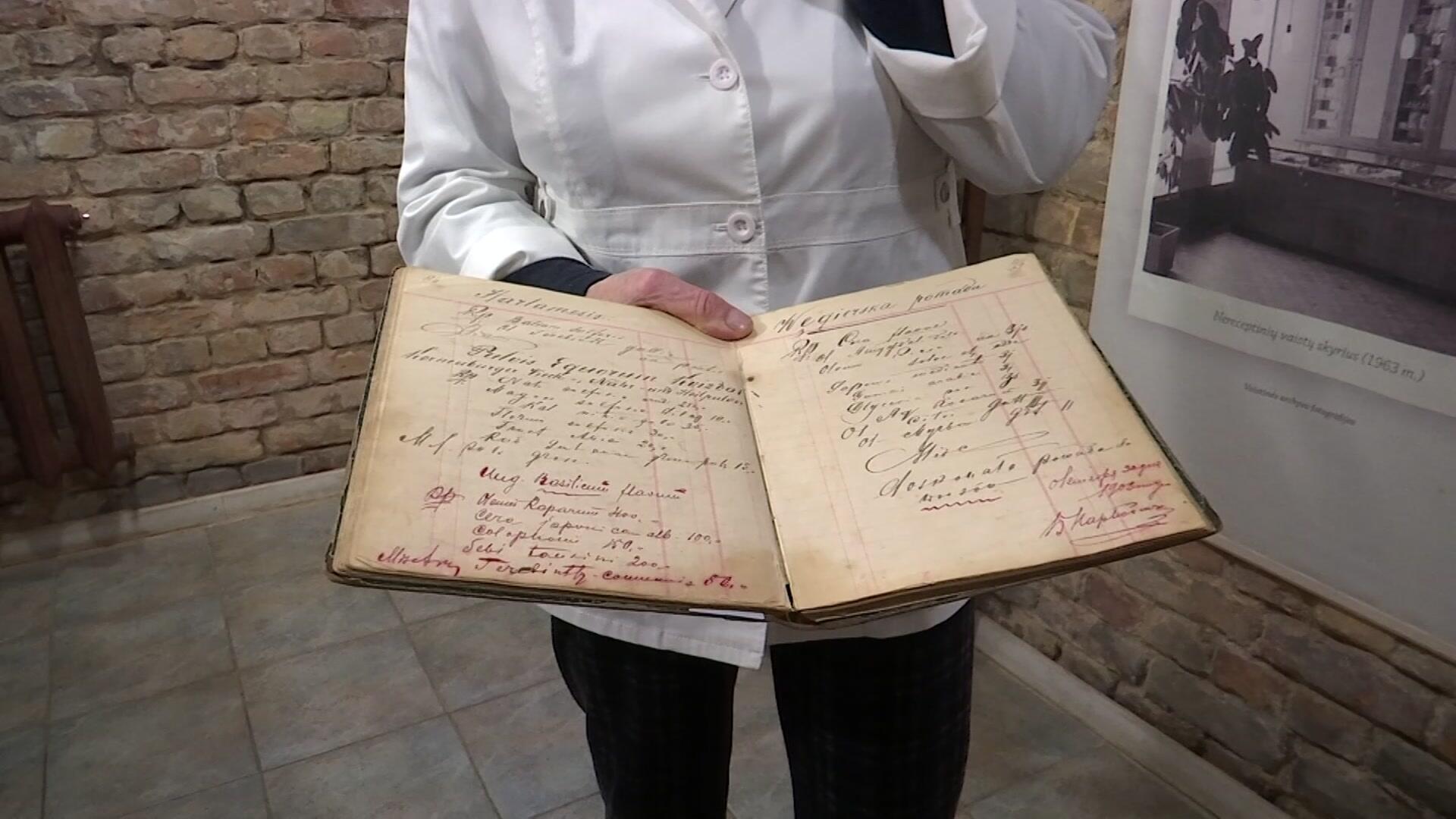 „Čia – Unguentum basilica. Baziliko tepalas, pagamintas iš baziliko augalo prieš šitiek metų“, – pasakojo vaistininkė, ilgametė vaistinės „Valerijonas“ vadovė Almyra Girdenienė.