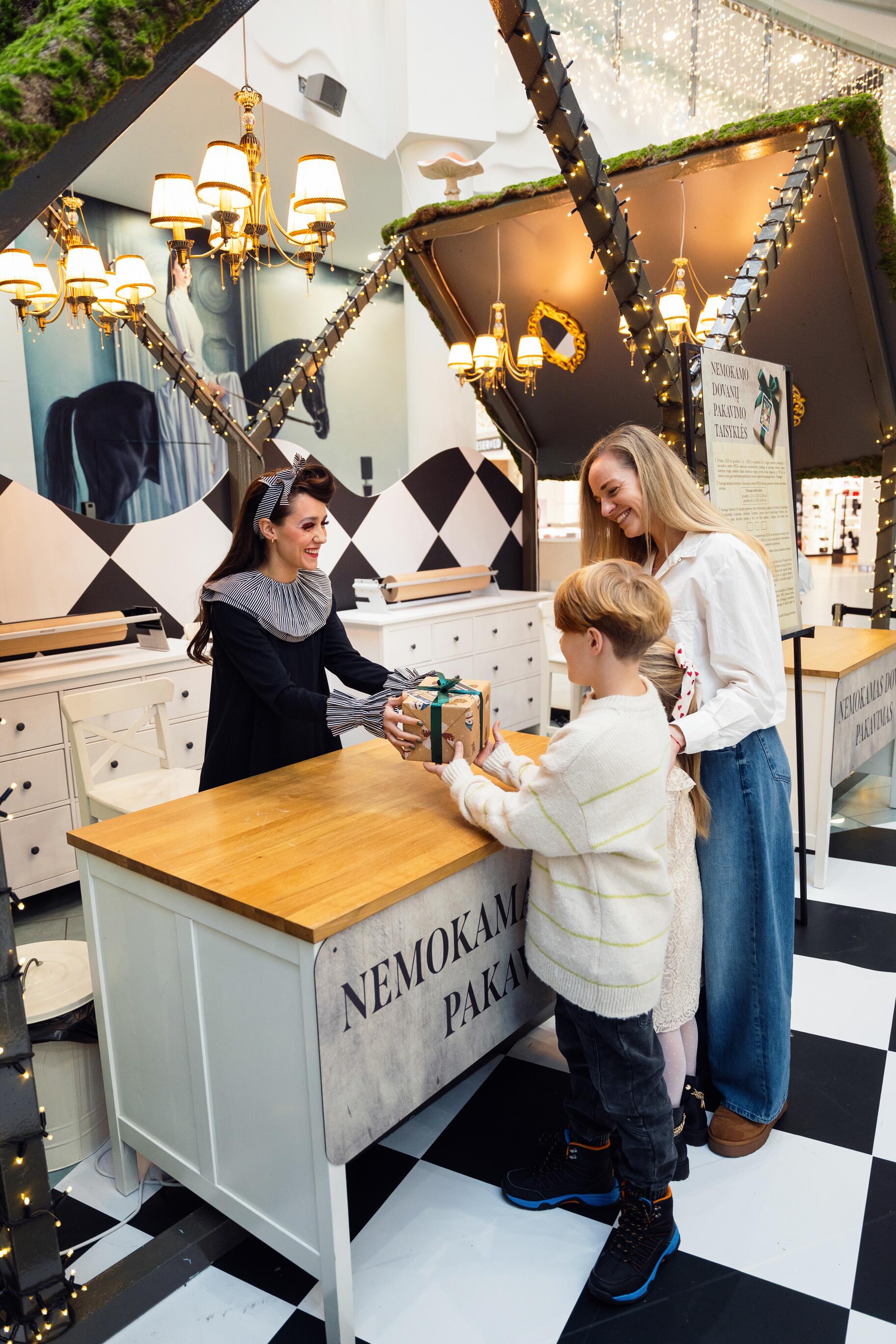 Iki Kūčių vakaro centrinėje „Megos“ aikštėje veikia speciali dovanų pakavimo erdvė. Čia nemokamai pakuojamos visos „Megoje“ įsigytos dovanos, kurioms vieno apsipirkimo metu išleista ne mažiau kaip 50 Eur. Tiesa, visi dovanomis virsiantys pirkiniai čia pakuojami tuomet, jei jų ar jų pakuotės forma yra taisyklingo stačiakampio, kvadrato ar cilindro.