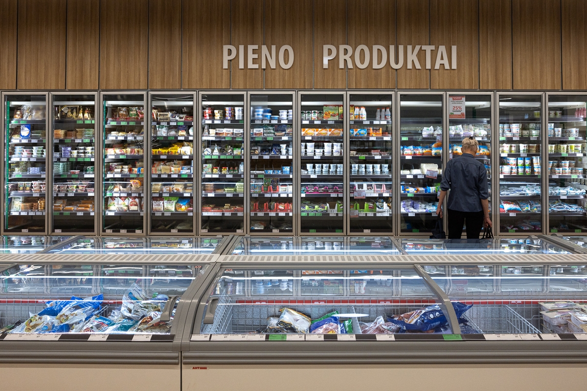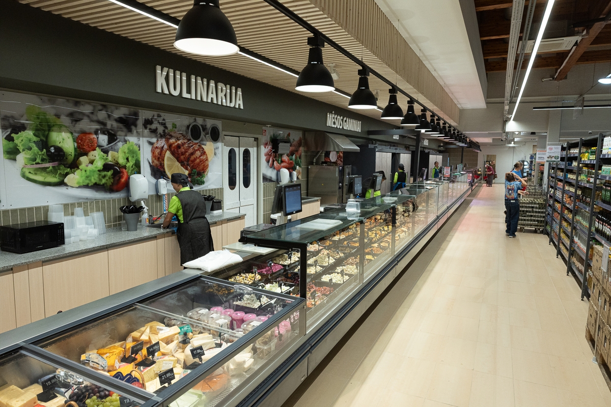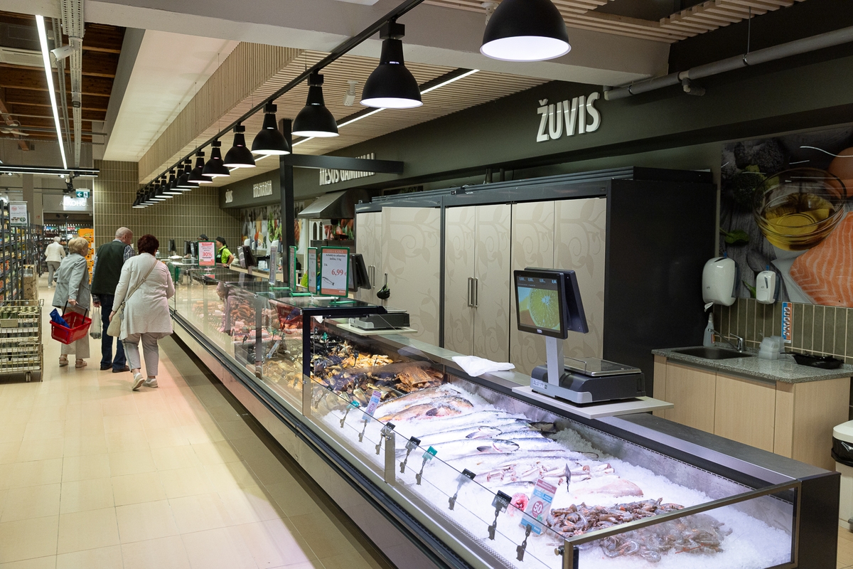 Gerokai išplėstas pieno produktų šaldytuvas vitrina. Greitesniam pirkėjų apsipirkimui įrengta net 3 kartus daugiau – 12 – savitarnos kasų, kurias aptarnauja dvi pardavėjos, o piko metu, jei reikia, prisijungia ir trečia.