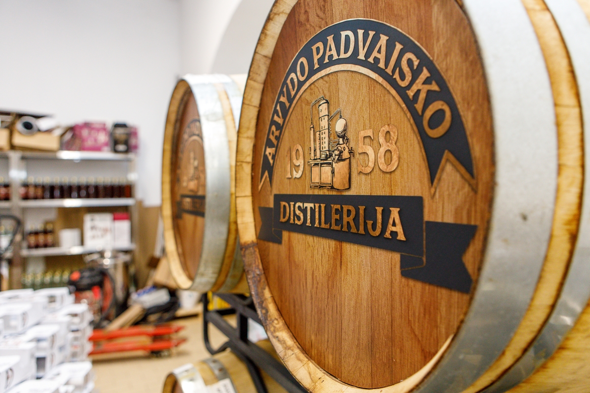 „O štai čia – mūsų senieji distiliatoriai. Vienas jų vokiškas, dabartinių distiliatorių pirmtakas“, – visus, susipažinusius su distilerija, potyrių kelionę A. Padvaiskas kvietė pratęsti Širvio ir Mūsios ežerų bičiulystėje įsikūrusiame Padvaisko dvare.