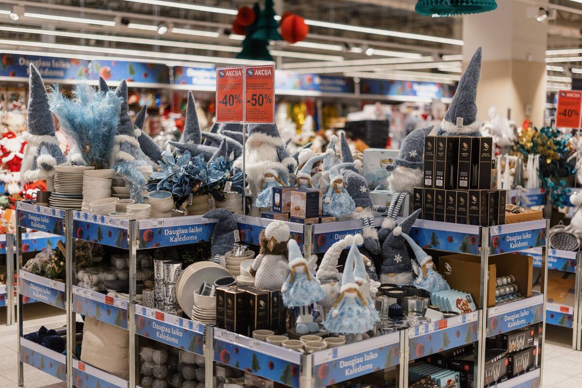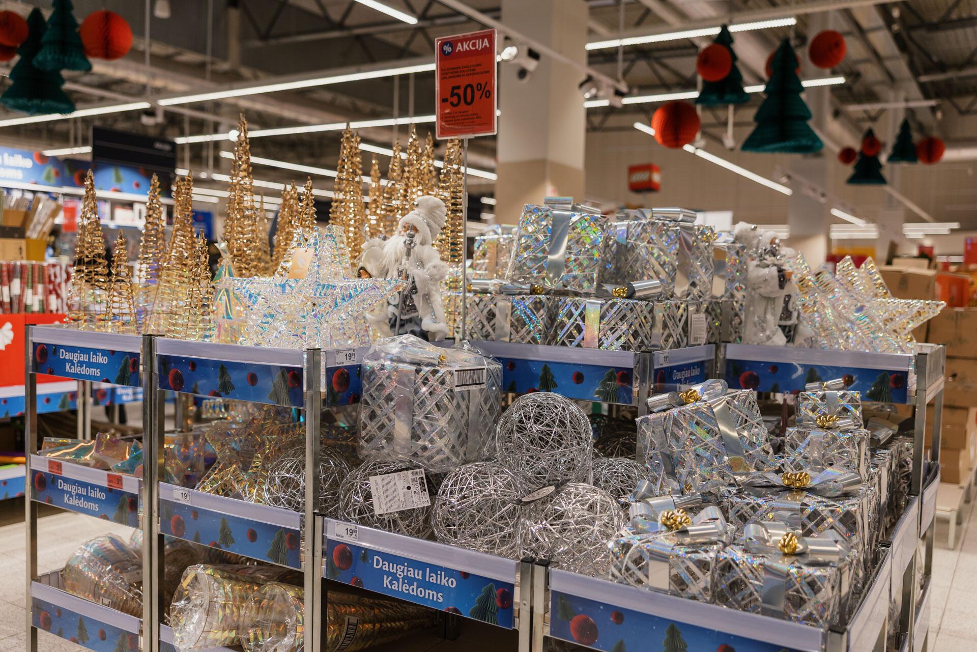 Pasirūpinti pigiau visais kalėdiniais žaisliukais, girliandomis ir dekoracijomis, pirkėjai galės pasinaudodami ir šios kategorijos 50 proc. nuolaida, kada prekių įsigyjama daugiau nei dvi. Dar didesnė nuolaida – 60 proc. – bus suteikiama dirbtinėms Kalėdų eglutėms.