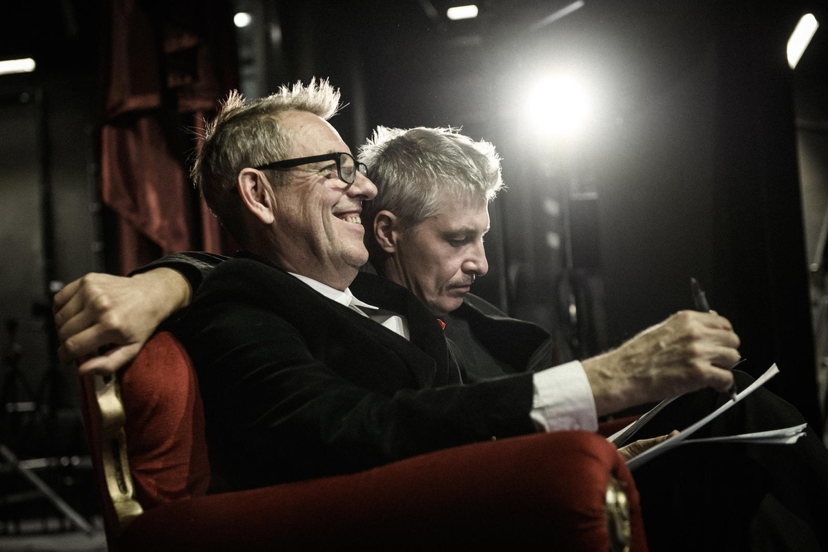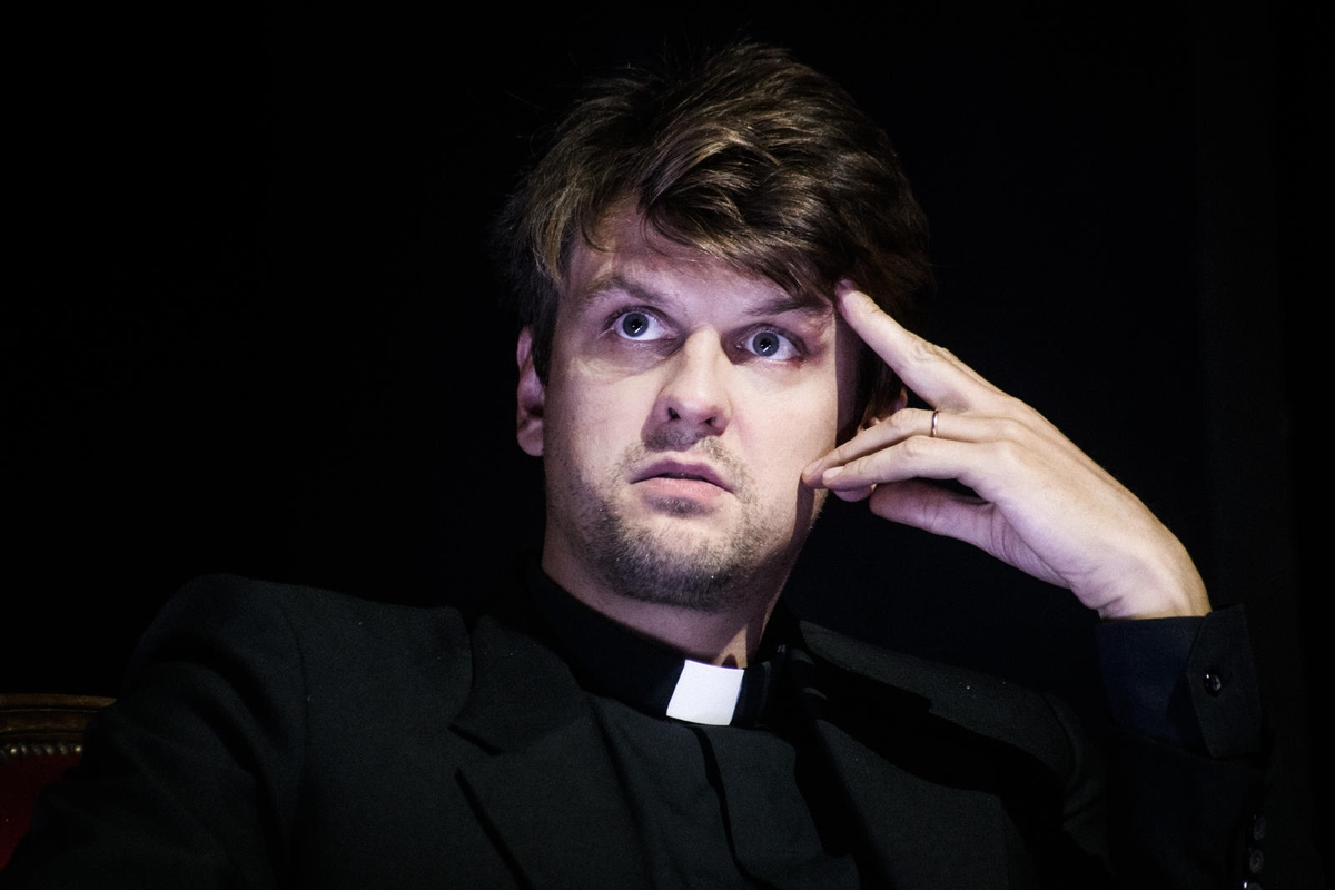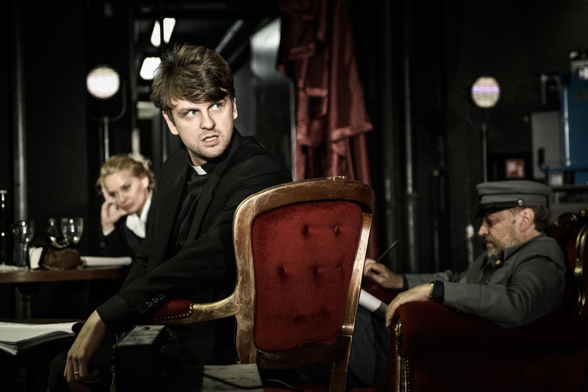 K.P: Ilgai sėdėjome prie tekstų. Režisieriui labai svarbus žodis, tai, ką tu sakai. Kiekvienas žodis, kiekviena mintis, kiekvienas sakinys turi turėti prasmę, būti aiškiai pasakytas, kažką reikšti. Būna, kad vaidindamas tam tikrus momentus tu praleidi, vedi link kulminacijos. Lacascade šito neleidžia. Jam svarbu, kad žmogus iš užsienio žiūrėdamas spektaklį, nesuprasdamas kalbos gebėtų suprasti scenoje vykstantį veiksmą.