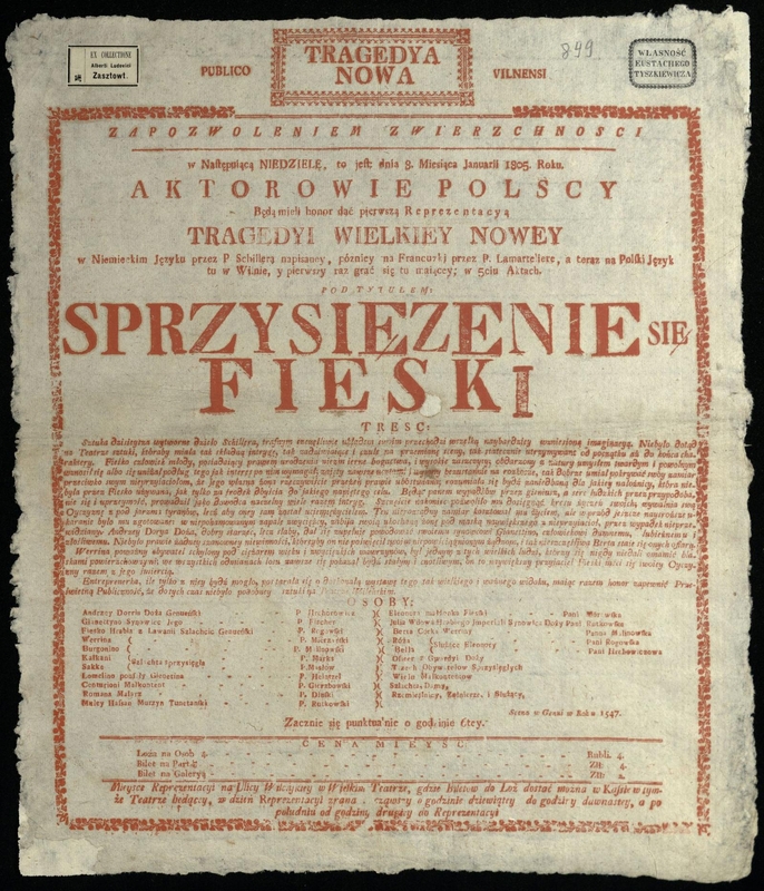 Trečiadienį 17 val. Vilniaus rotušėje atidaroma LMA Vrublevskių bibliotekos paroda „Senosios teatro afišos“.