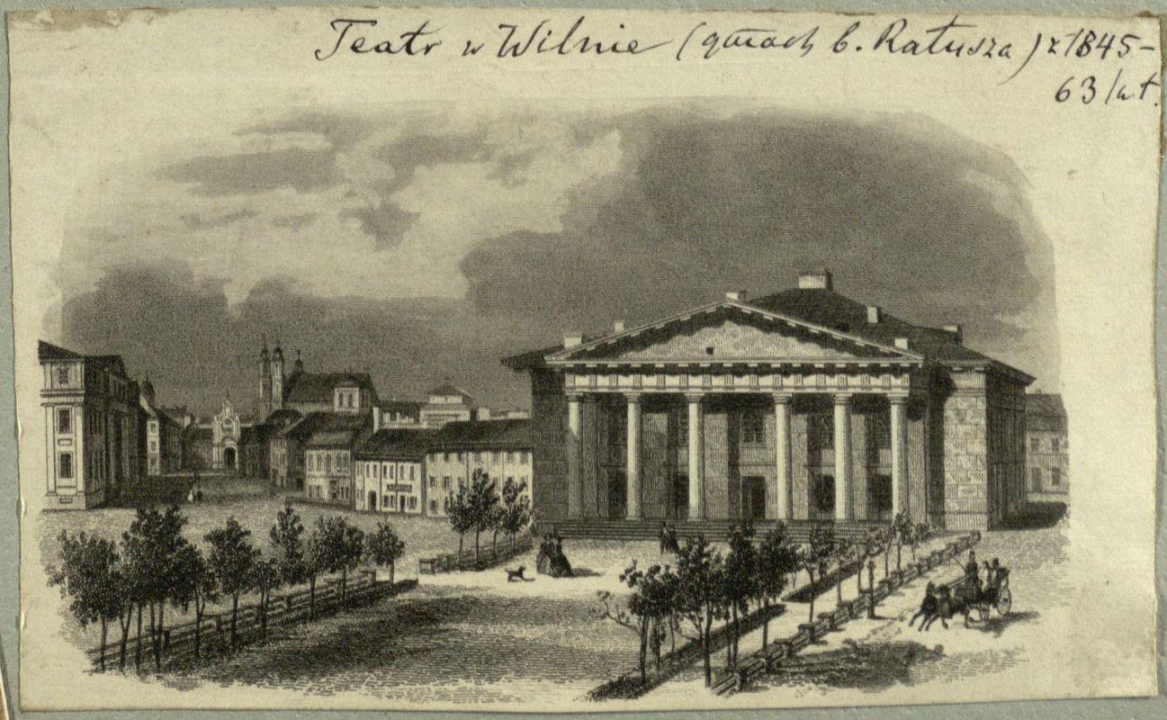 XIX a. pradžioje informacija afišose pateikiama lenkų kalba, vėliau lenkų ir rusų, o maždaug po 1864 metų, įsigalėjus spaudos lotyniškais rašmenimis draudimui, tik rusiškai. Sunkumai, susiję su kalbos suvaržymu, teatrui pasireiškė ir kitais būdais – buvo privalomai įtraukti į repertuarą vis daugiau kūrinių rusų kalba. Tai vertė vietinę aktorių grupę gausiau papildyti atvykstančiais rusų aktoriais.