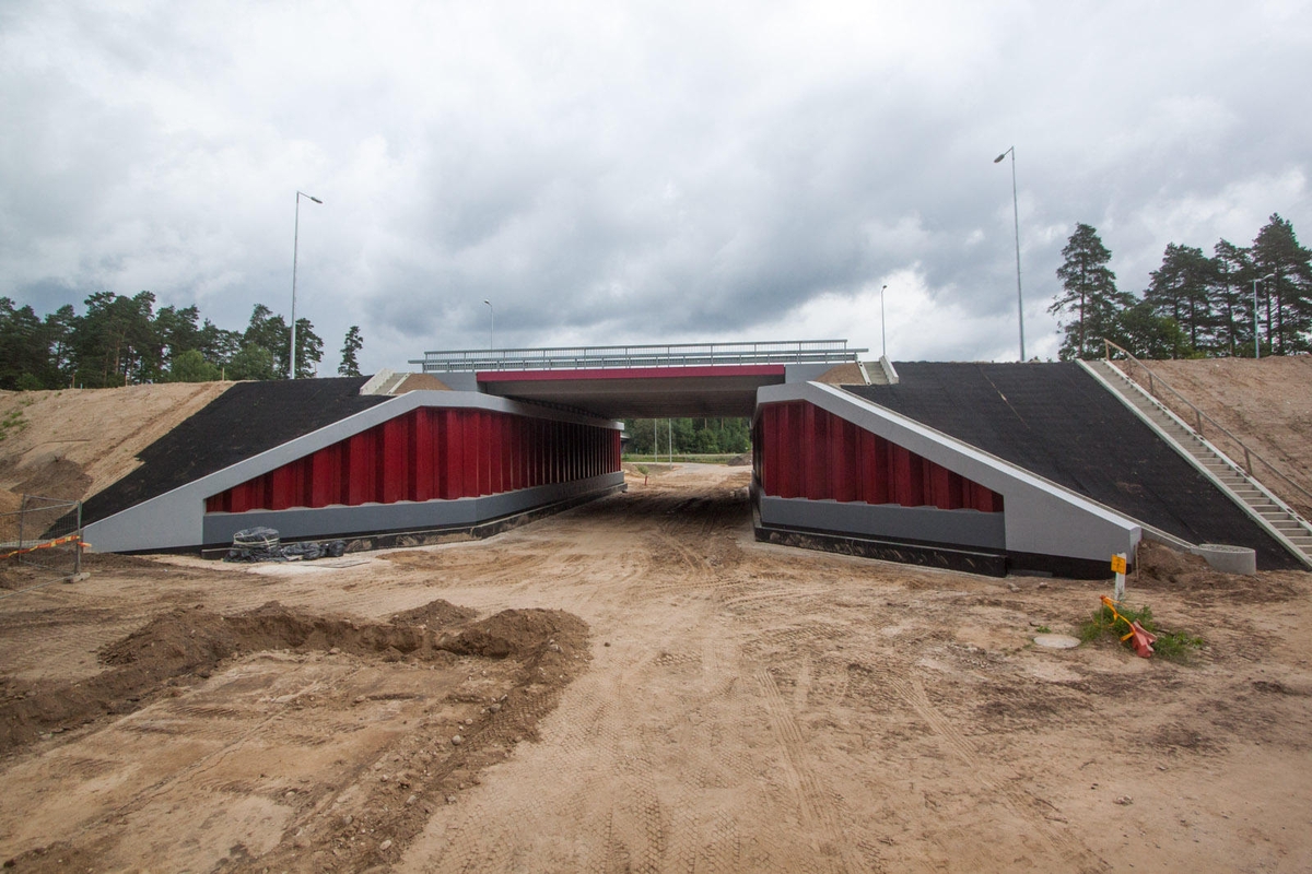 Užsakovė – Lietuvos automobilių kelių direkcija prie LR susisiekimo ministerijos. Rangos darbus, vadovaujantis pirmąja sutartimi, vykdė „Lemminkainen Lietuva“ ir „Panevėžio keliai“. Darbai baigti 2012 metais. Antrojo etapo darbus vykdo jungtinės veiklos pagrindu apsijungusios trys šalies įmonės: „Panevėžio keliai“, „Lemminkainen Lietuva“ ir „Kauno tiltai“. Atsakingasis junginio partneris – „Panevėžio keliai“. Sutartyje numatyta darbų pabaiga – 2013 metų lapkritis. Trečiojo etapo darbus pagal sutartį „Panevėžio keliai“ vykdo drauge su partneriu „Kauno tiltai“. Darbai bus atlikti iki 2013 metų gruodžio.