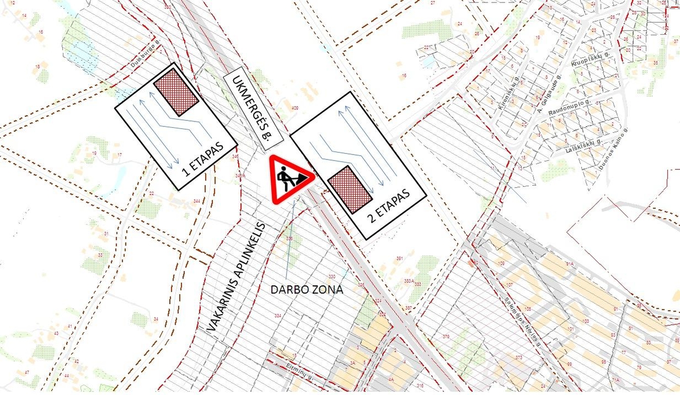 Vilniaus miesto savivaldybė praneša, kad vykdant III vakarinio aplinkkelio etapą bus ribojamas transporto eismas Ukmergės gatvės dalyje ties Mykolo Lietuvio gatve. Dėl numatomų darbų eismo ribojimas numatytas dviem etapais:
