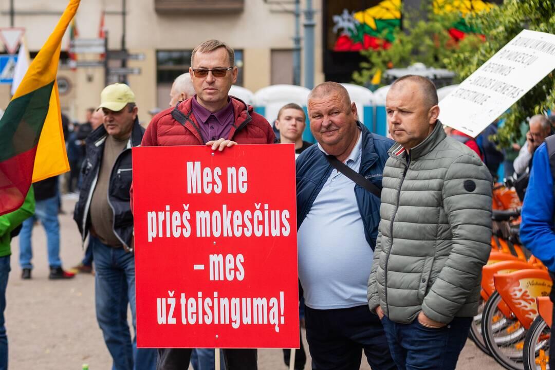 Nepriklausomybės aikštėje ketvirtadienio rytą susirinkę per tūkstantis ūkininkų, nešinų plakatais su užrašais „Už kiek dirbtum nuo aušros iki sutemos?“, „Ką pasėsi, tą... nusineš mokesčiai“, „Mes ne prieš mokesčius – mes už teisingumą“.