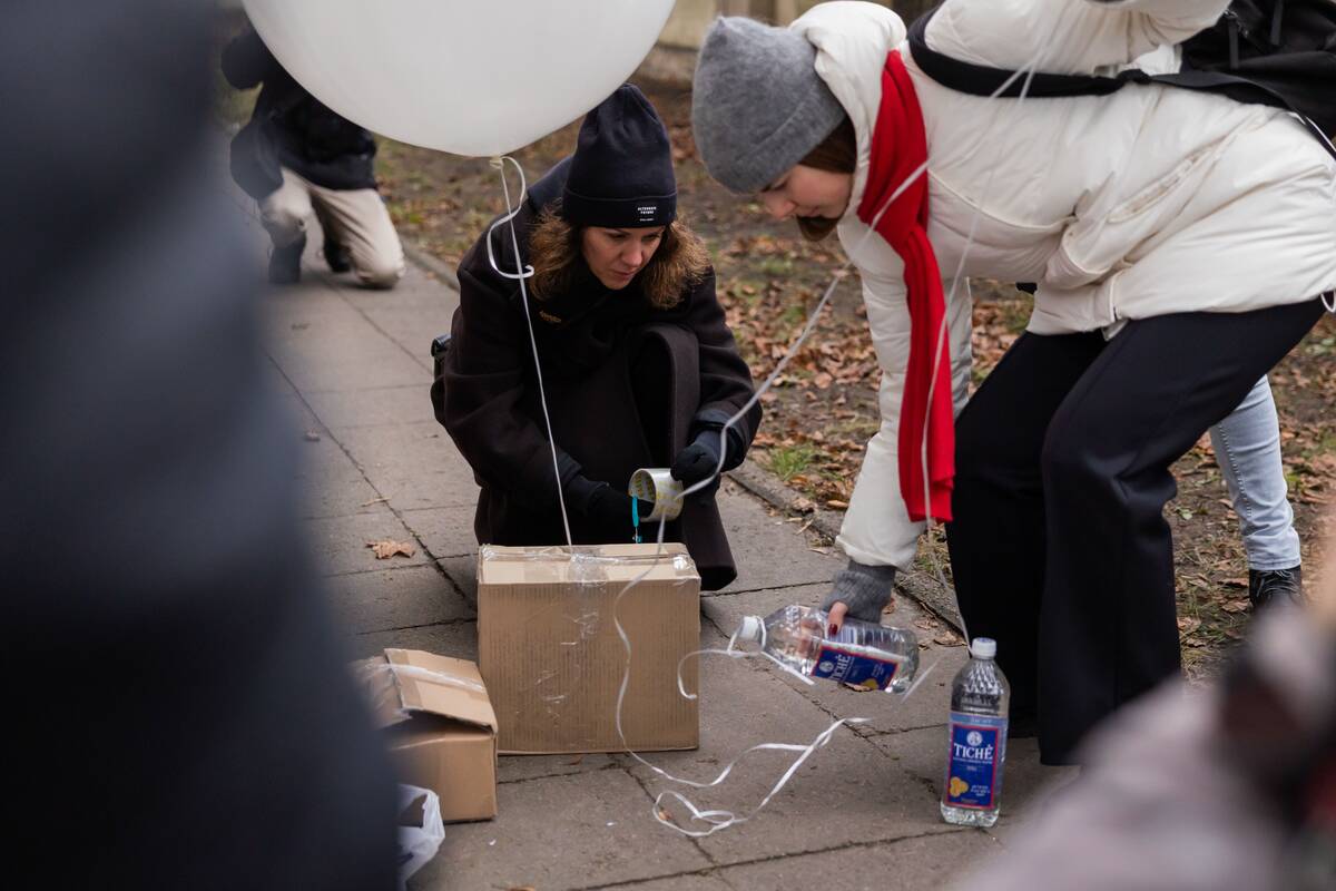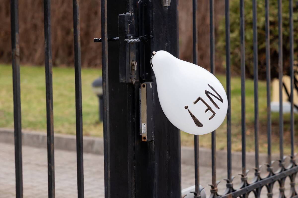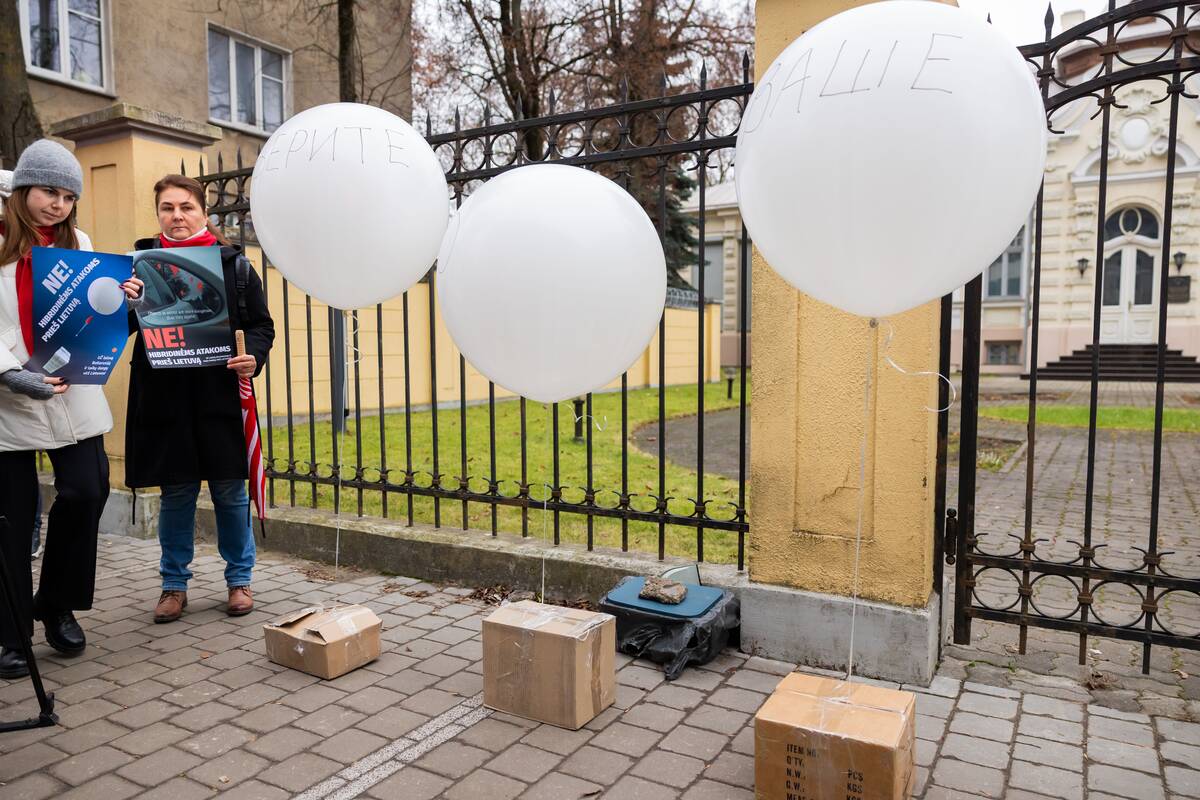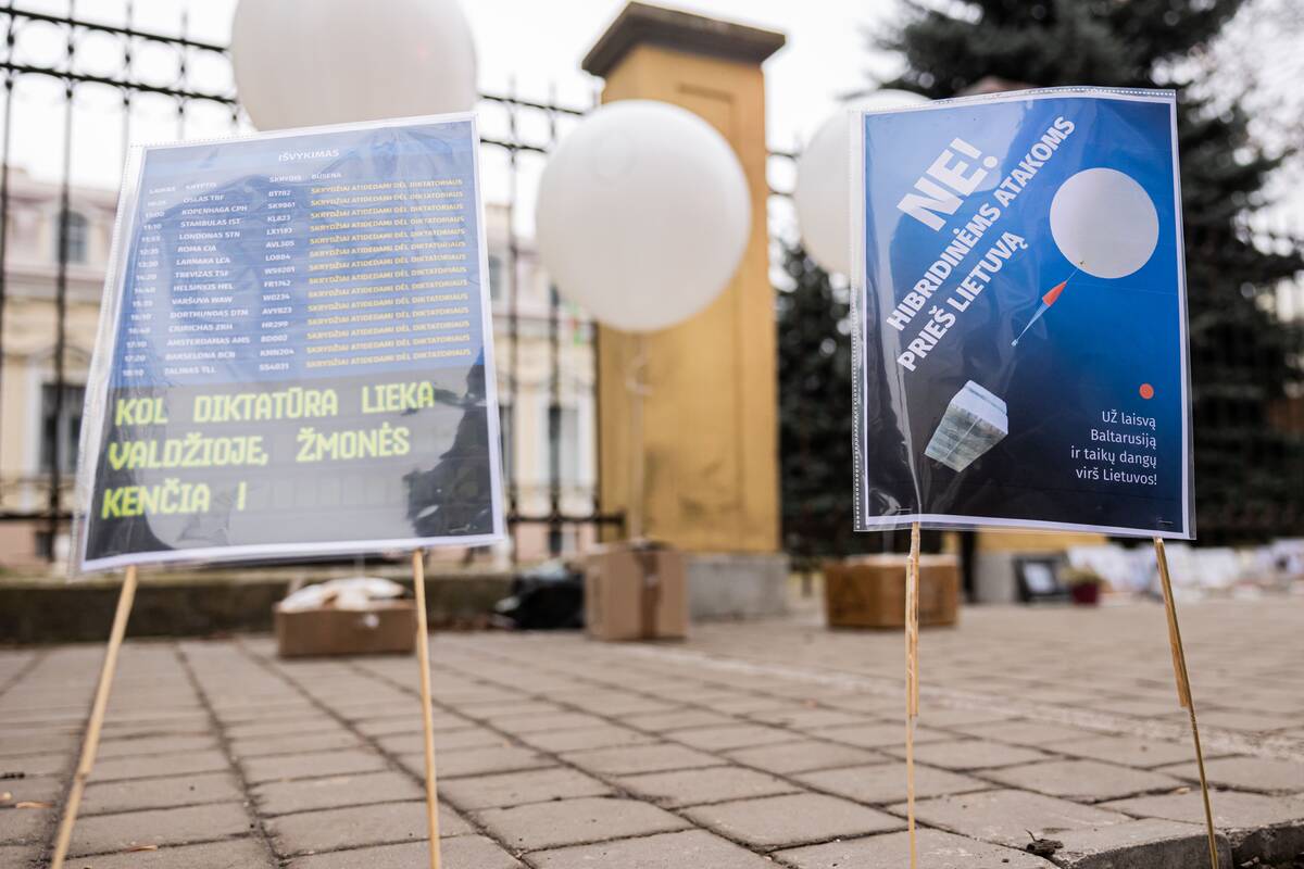 Į Lietuvą vis įskrendant iš Baltarusijos leidžiamiems balionams su kontrabanda, apie 30 žmonių prie kaimyninės šalies ambasados Vilniuje protestavo dėl kontrabandinių balionų keliamos grėsmės.