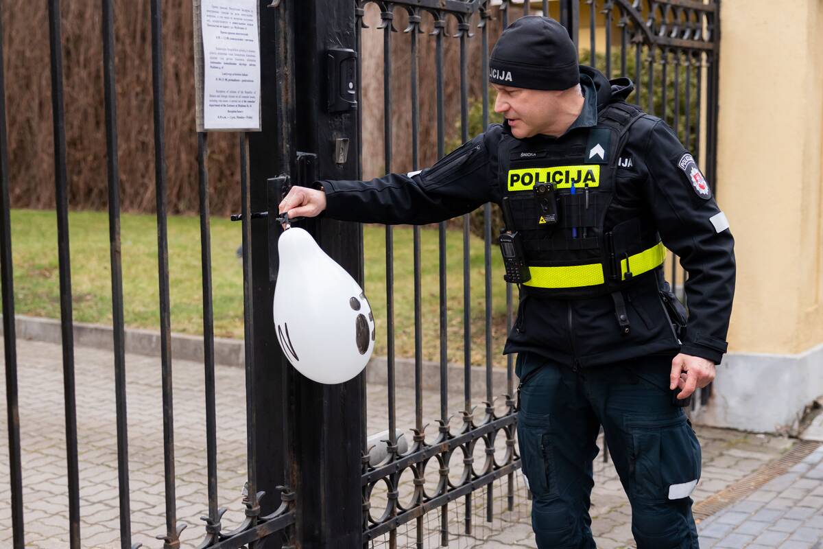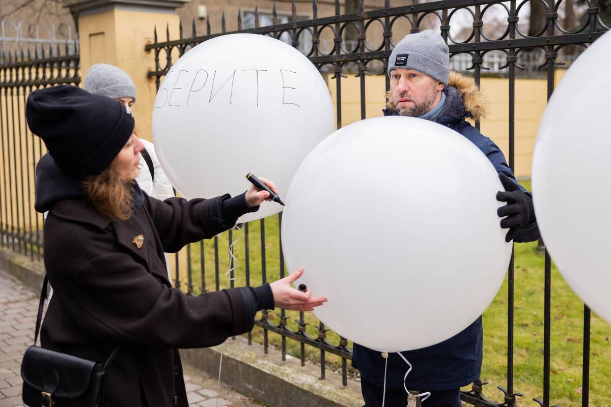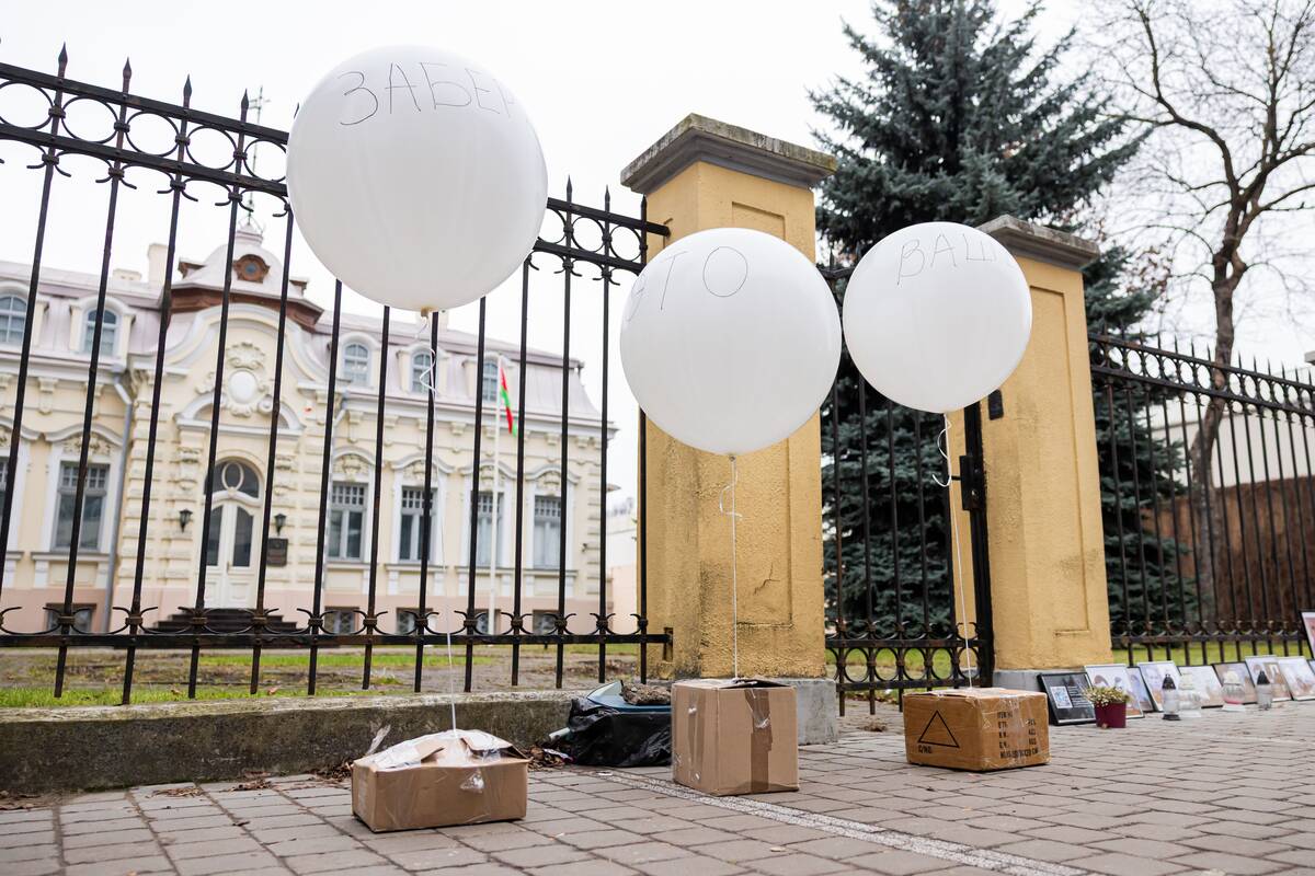 Be to, prie Baltarusijos ambasados vartų protesto organizatoriai nunešė baltus balionus su imitacine kontrabanda.