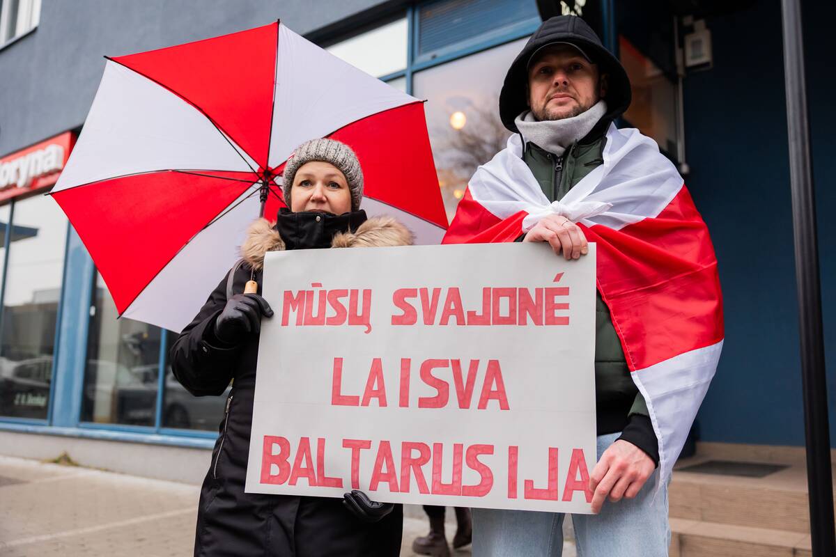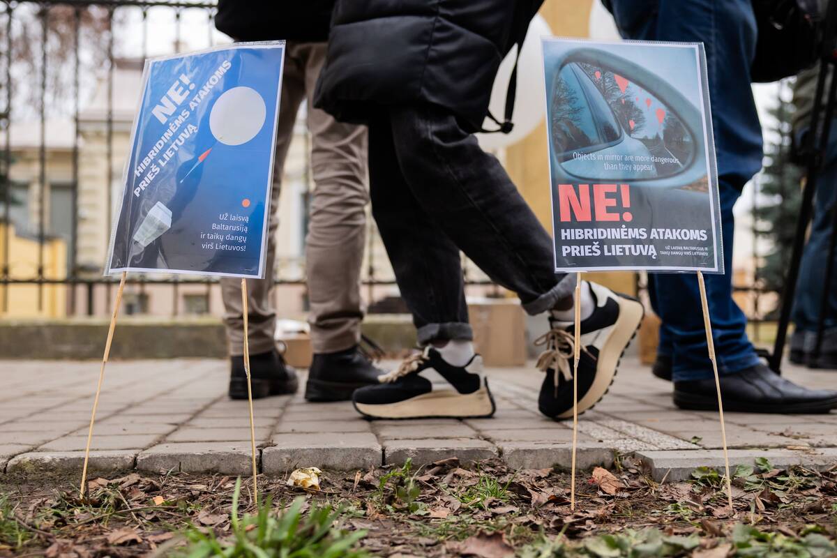 Prie Baltarusijos ambasados – protestuotojų plakatai: „Ne! Hibridinėms atakoms prieš Lietuvą“ Pereiti į pagrindinį turinį