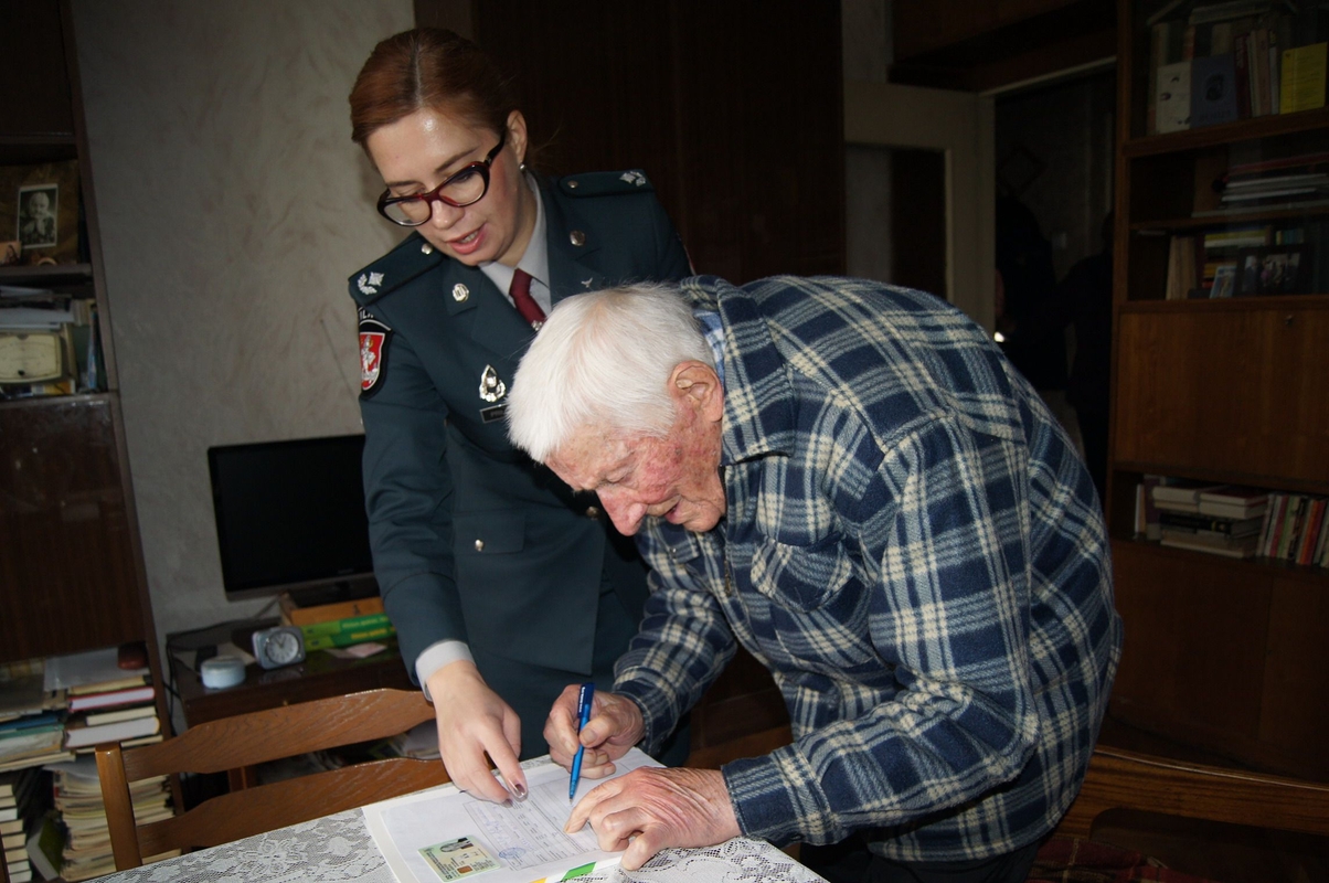 Migracijos valdybos specialistai, atsižvelgdami į garbingą žmonių amžių ir fizines galias, jų prašymus asmens dokumentams gaminti priėmė namų aplinkoje. Tam jie naudojo mobilią biometrinių duomenų registravimo įrangą, kuri ir yra skirta negalių turinčių žmonių biometrinius duomenis nuskaityti jiems įprastoje aplinkoje. Pas minėtus ir kitus garbaus amžiaus negalią turinčius vilniečius vyko su mobiliąja biometrinių duomenų registravimo įranga dirbantys specialistai, o jau pagamintą pasą ar asmens tapatybės kortelę senoliams teikė Migracijos valdybos Pasų skyriaus viršininkė Edita Prilepskienė.
