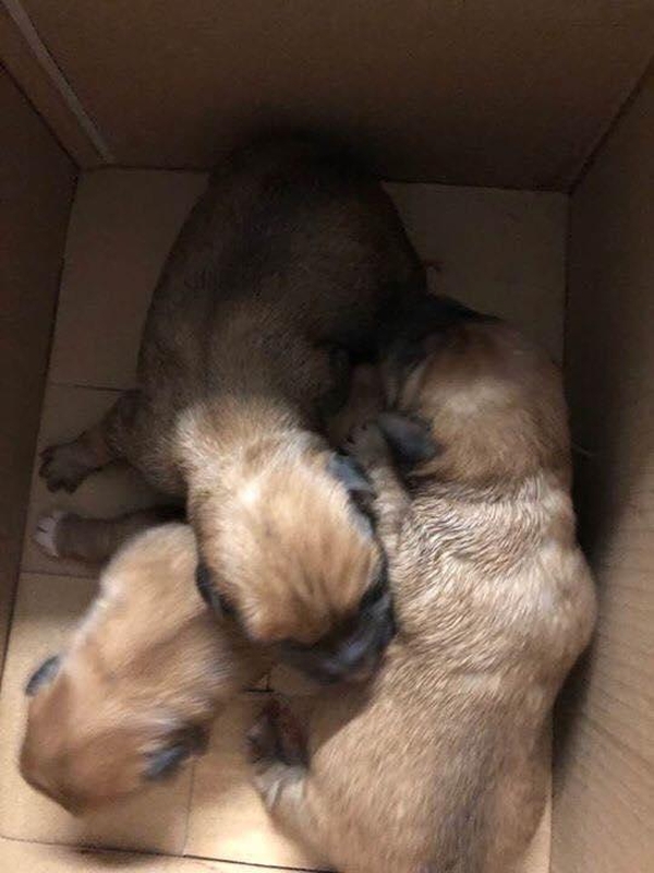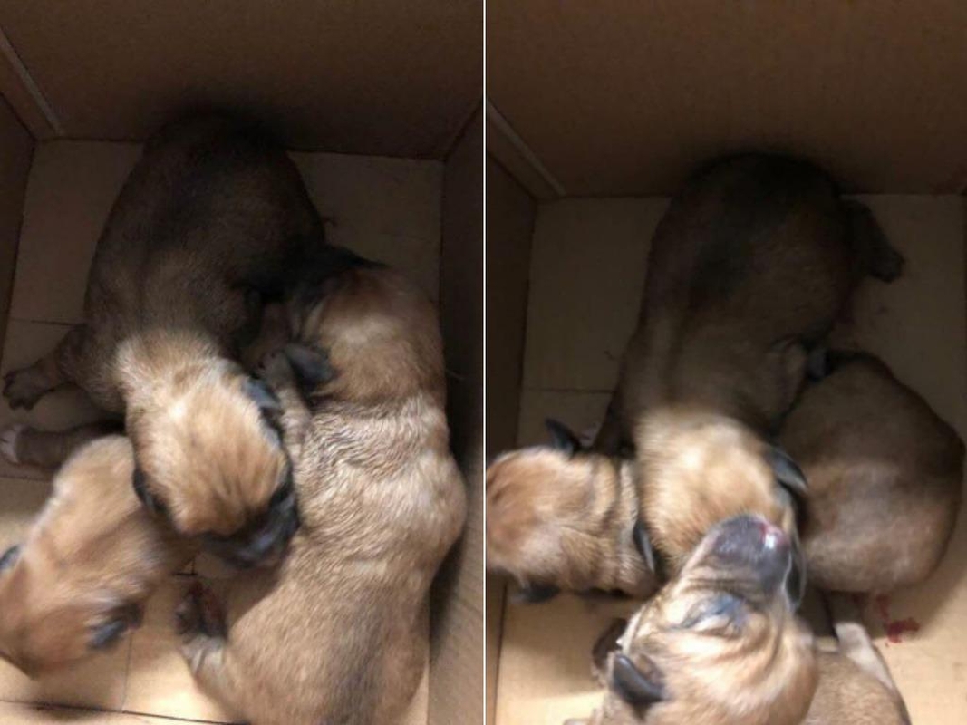 Trys mažyliai buvo suvynioti į maišą drauge su brangaus gėrimo buteliais ir išmesti į šiukšlių konteinerį. Išgelbėti šuniukai buvo kruvini, sušalę ir leisgyviai.
