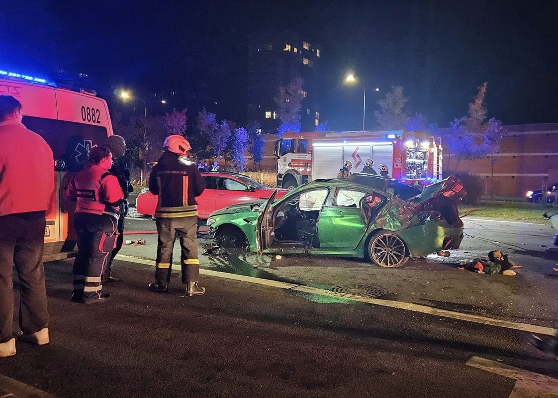 Įvykio liudininkai socialiniuose tinkluose rašo, kad sprogo vieno automobilio padanga, todėl jis rėžėsi į kitą BMW automobilį.