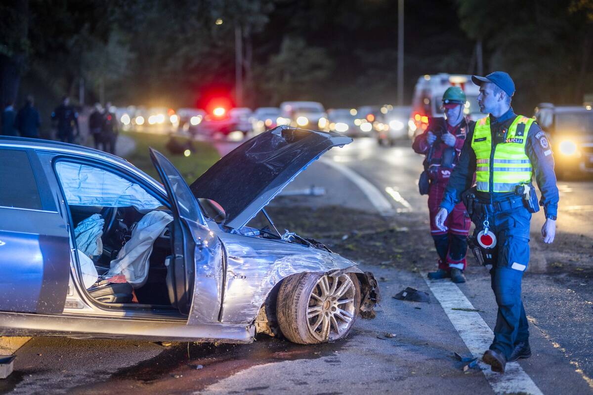 Delfi.lt rašo, kad tada BMW nuo smūgio apsisuko ir sustojo prieš eismą pakibęs ant pakelės.