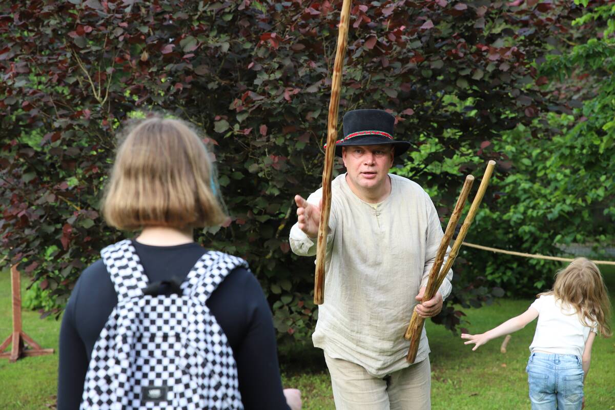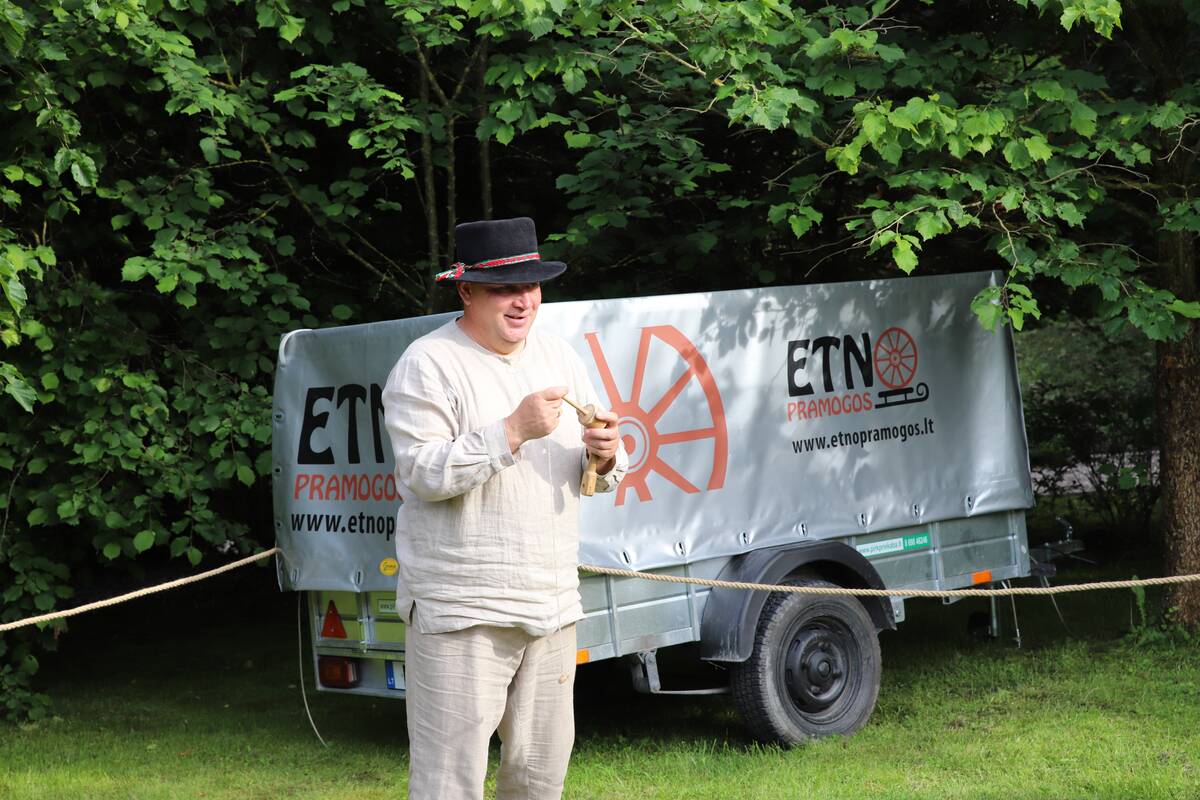 „Atvažiuoju su savo priekaba, pilna rakandų. Vaikams ar šeimoms papasakoju ne tik apie tai, kas yra tos etnopramogos, bet ir prie jų akių pagaminu skudutį, birbynę. Tada pradedame judėti, sportuoti – individualiai ir komandomis. O pabaigoje visiems dalyviams padovanoju kokį nors instrumentą – birbynę ar skudutį – ir visi grodami atsisveikiname“, – publikos niekada nenuviliančiu scenarijumi dalijasi etnopramogų organizatorius.